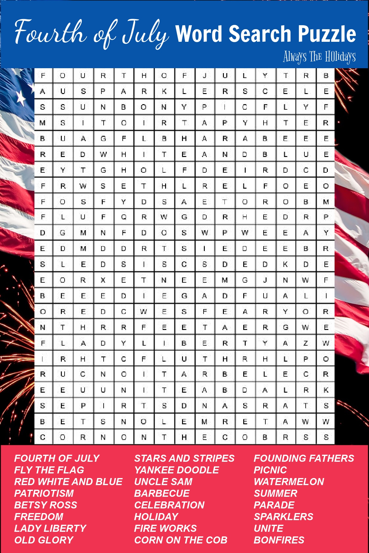 Are you looking for a fun and free activity to celebrate the 4th of July? Look no further! We have a fantastic 4th of July word search printable for you to enjoy. Whether you’re hosting a backyard BBQ or just looking for a quiet activity to do at home, this word search is perfect for all ages.