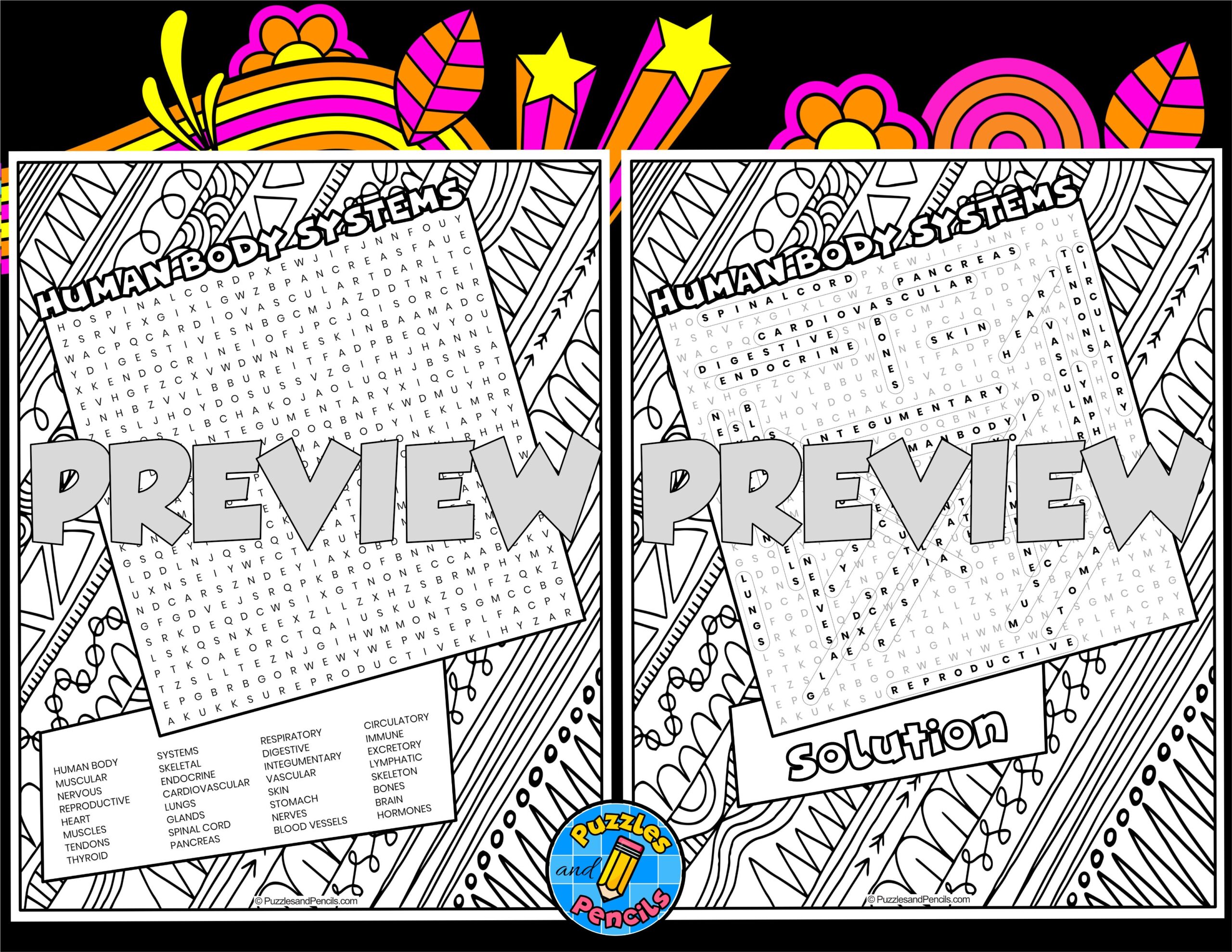 Human Body Systems Word Search Puzzle With Coloring Wordsearch Made By Teachers