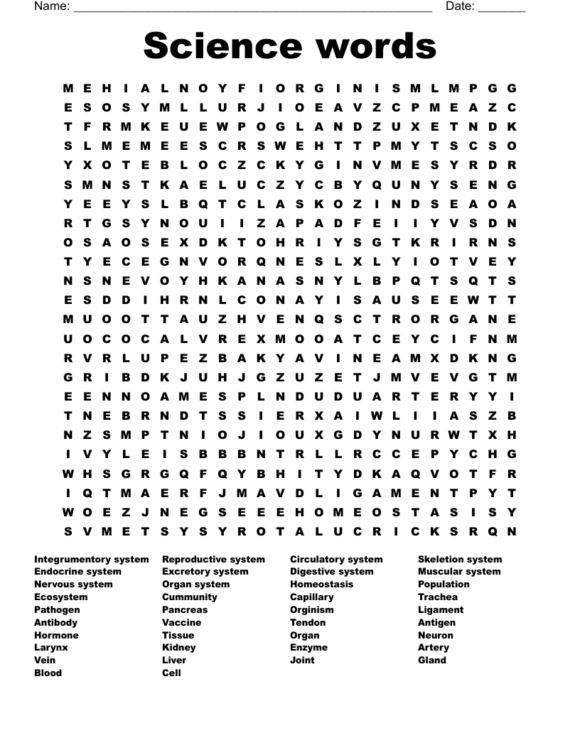 Science Words Word Search WordMint