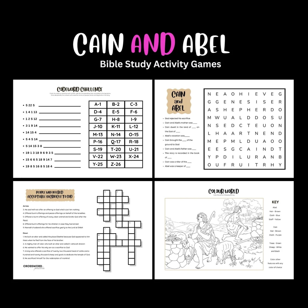 Cain Abel Bible Christian Church Game Bible Study Quiz Kid Sunday School Fun Activity Religious Lesson Word Search Crossword Puzzle Etsy