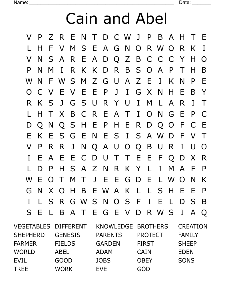 So, grab a pencil, get comfortable, and prepare to dive into the world of Cain and Abel with this exciting word search printable. Whether you’re solving it solo or challenging a friend, you’re sure to have a great time exploring the story while sharpening your mind in the process.