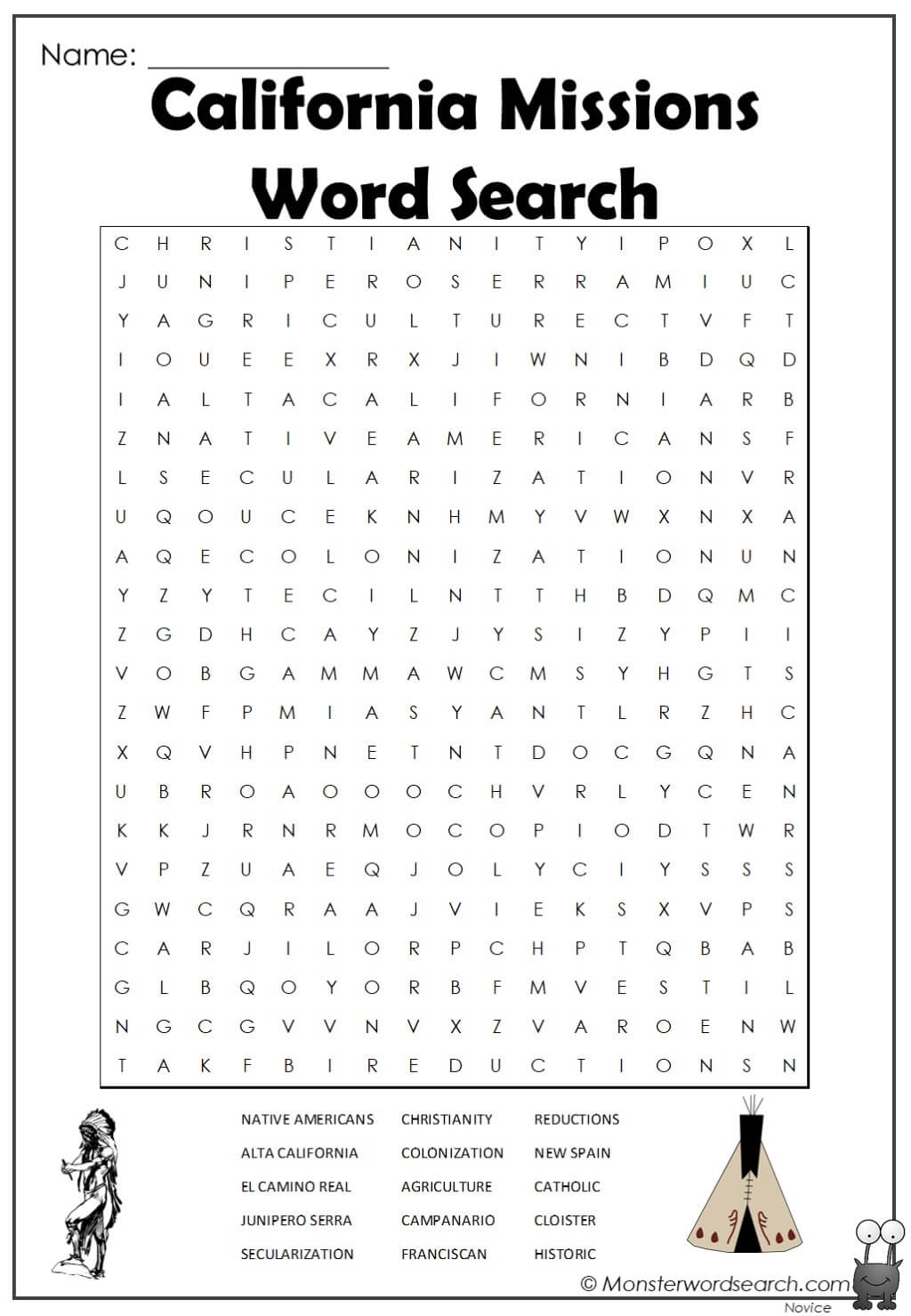 California Missions Word Search Monster Word Search