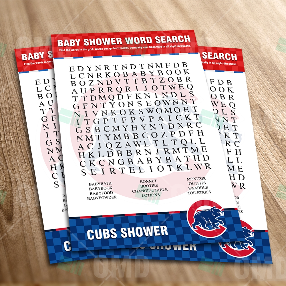 Chicago Cubs Word Search Baby Shower Game Sports Invites