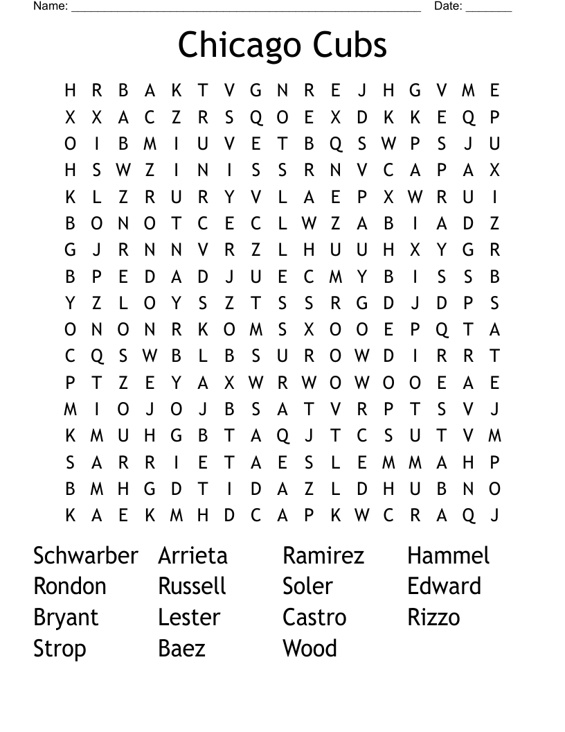Chicago Cubs Word Search Printable