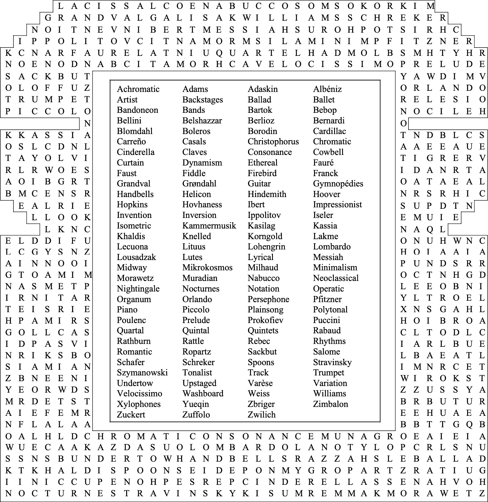 Simply print out the word search, grab a pen or pencil, and start circling the names of the composers as you find them. You can challenge yourself to see how quickly you can complete the puzzle or take your time and enjoy the process of searching for each name.