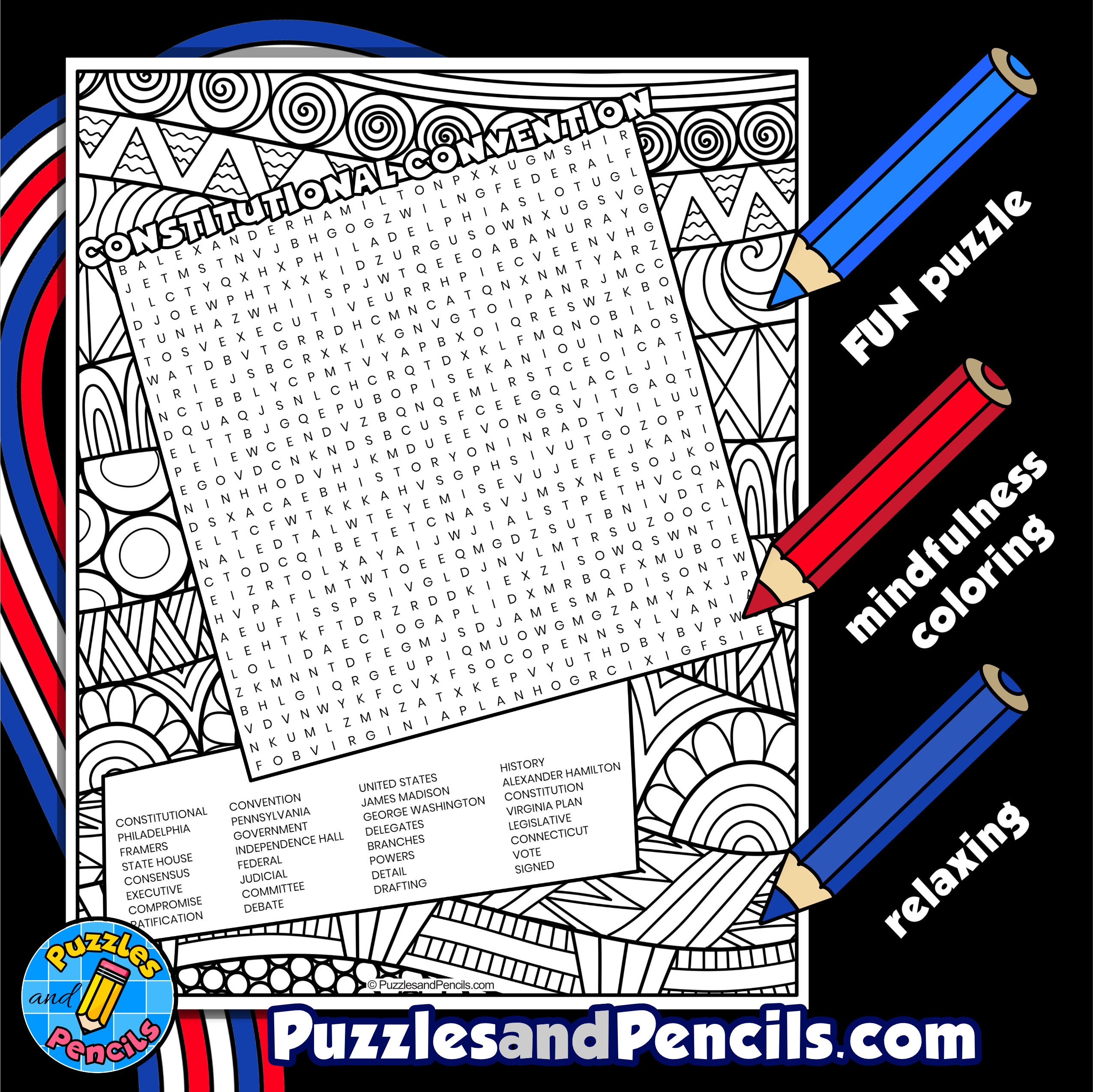 Constitutional Convention Word Search Puzzle With Coloring US History Wordsearch Made By Teachers