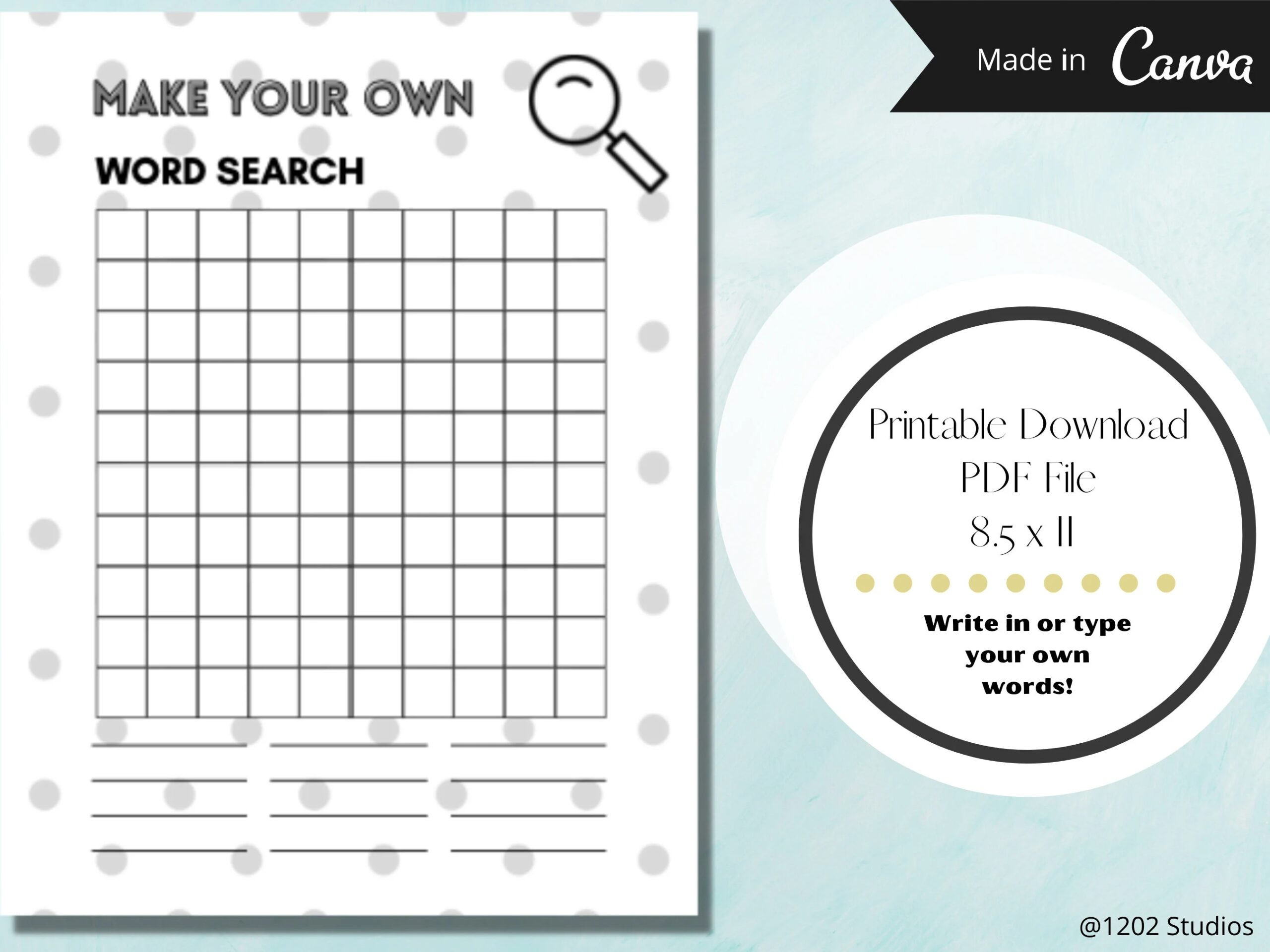 Make Your Own Word Search DIY Word Search Printable Download Word Search Template Etsy