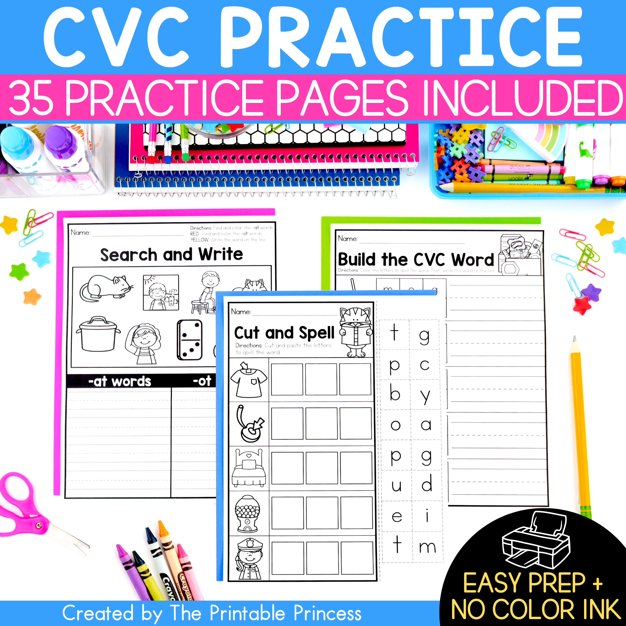 No Prep CVC Worksheets The Printable Princess