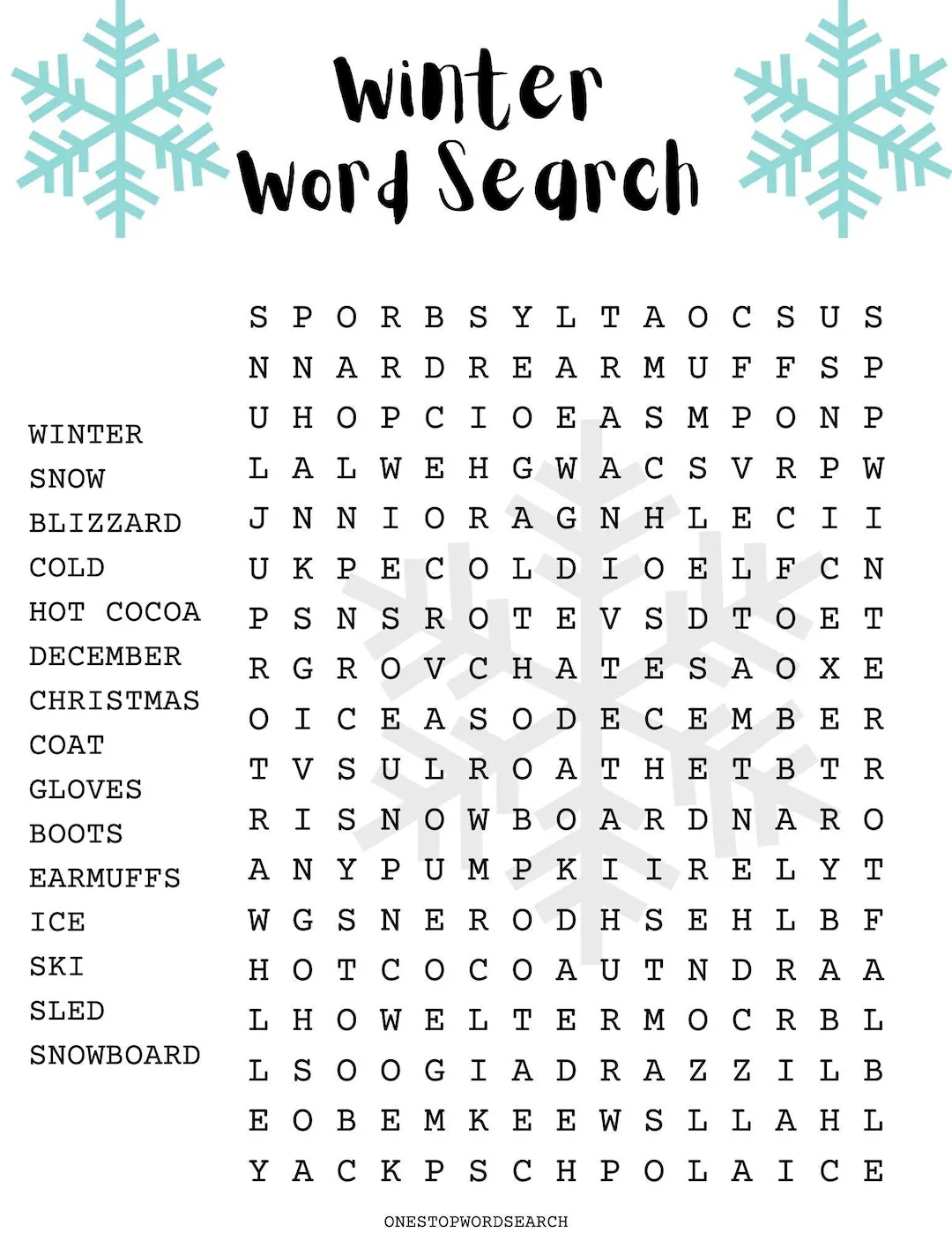 Winter Word Search WordMint