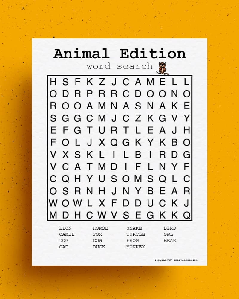 Free Animal Word Search Printable PDF Game Sheets Crazy Laura