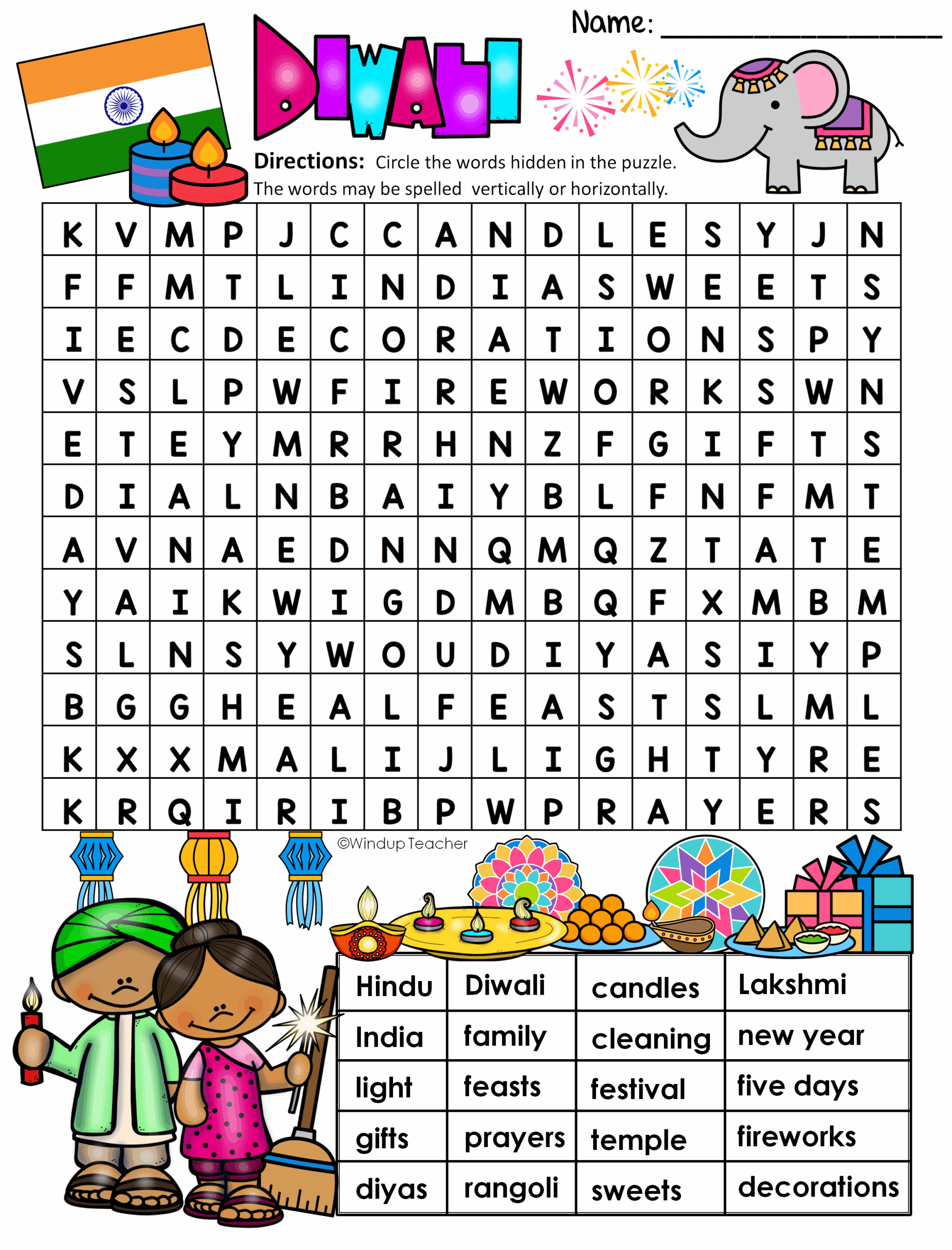 Diwali Word Search EASY Puzzle Ready To Go Made By Teachers
