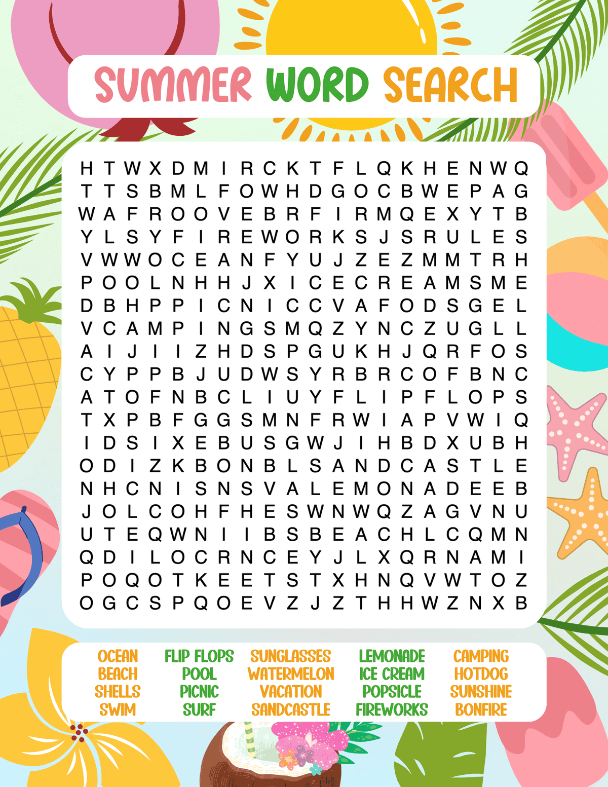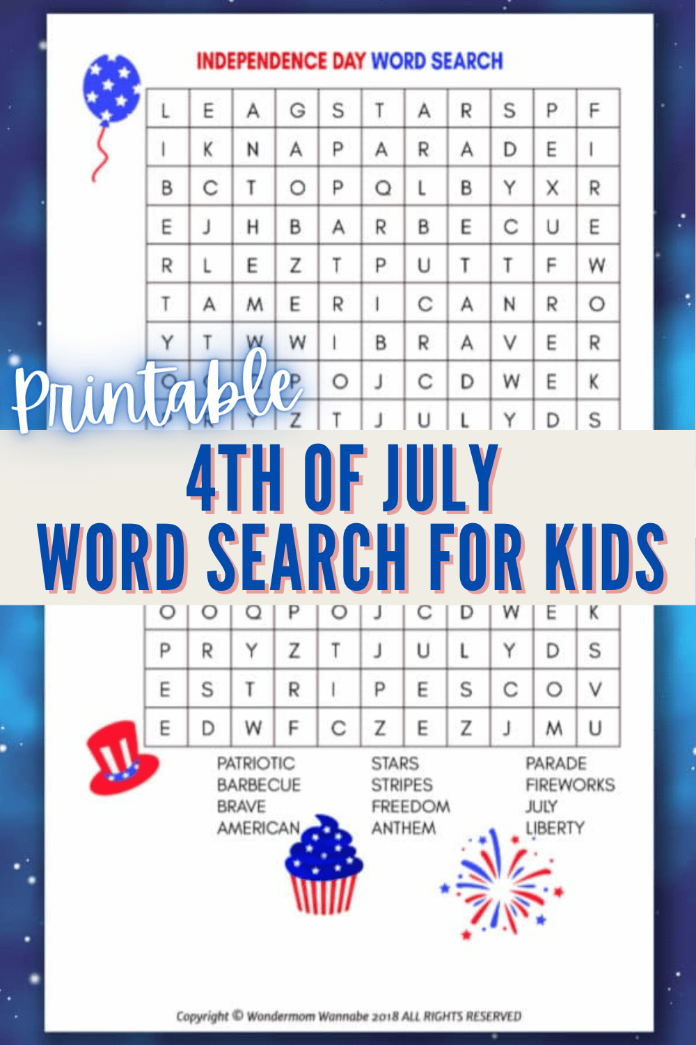 Word searches are a great way to pass the time and challenge your brain. They are also a fantastic way to keep kids entertained while waiting for the fireworks to start. Plus, they are super easy to print out and take with you wherever you go!