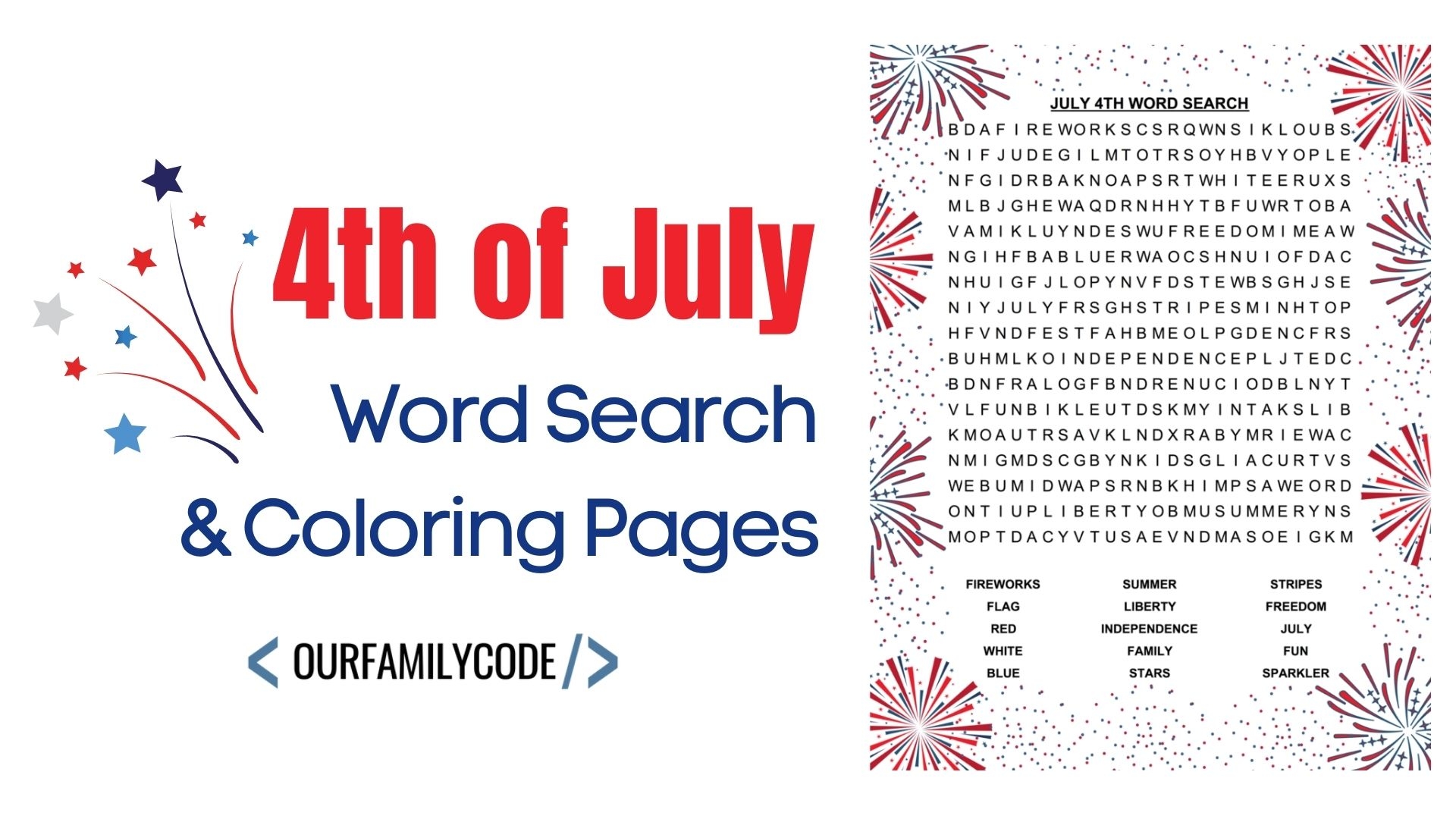 July 4th Word Search And Fireworks Coloring Pages Our Family Code