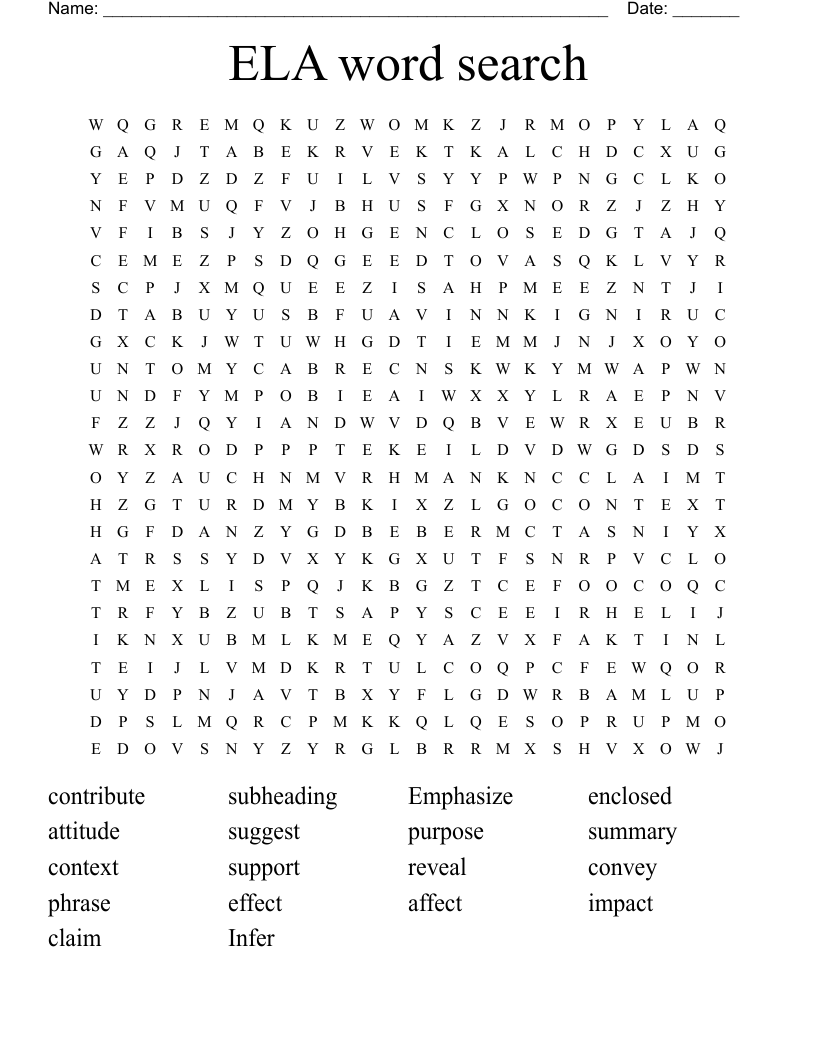 Ela Word Searches Printable