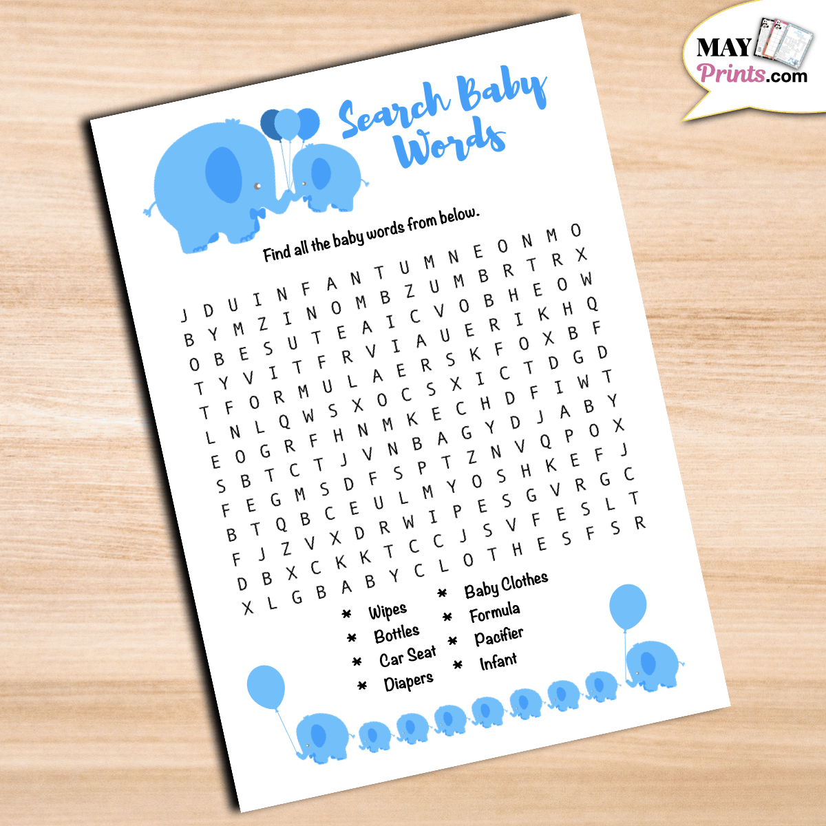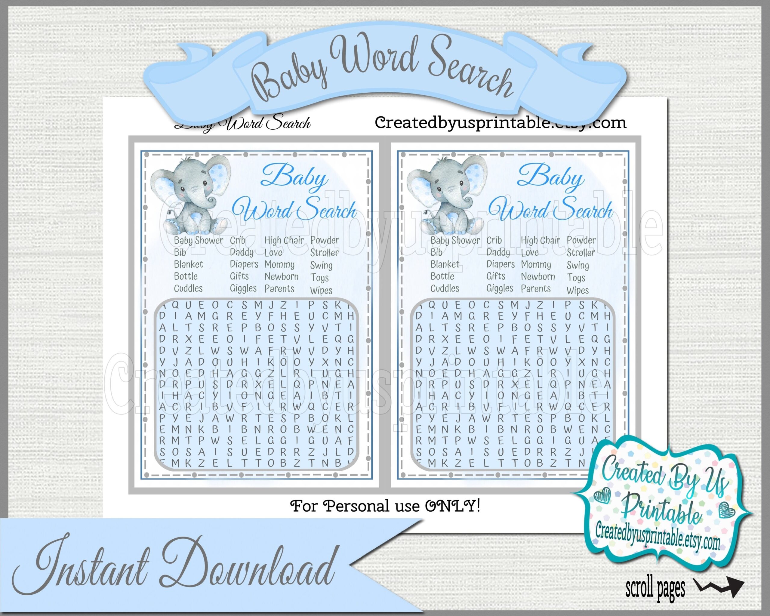 Elephant Baby Shower Game Boy Elephant Word Search Game Cards Elephant Baby Boy Shower Party Ideas Elephant Printable Game Digital Download Etsy