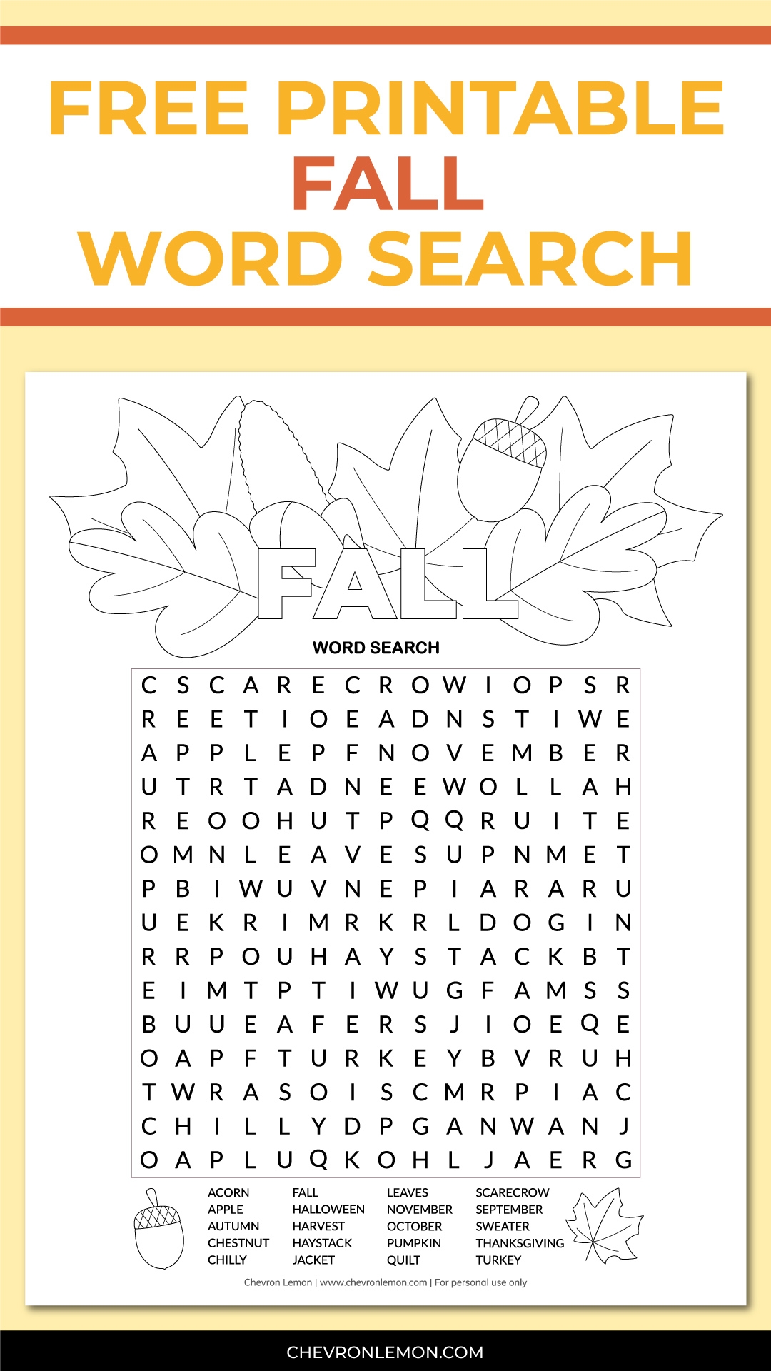 Printable Fall Word Search Chevron Lemon