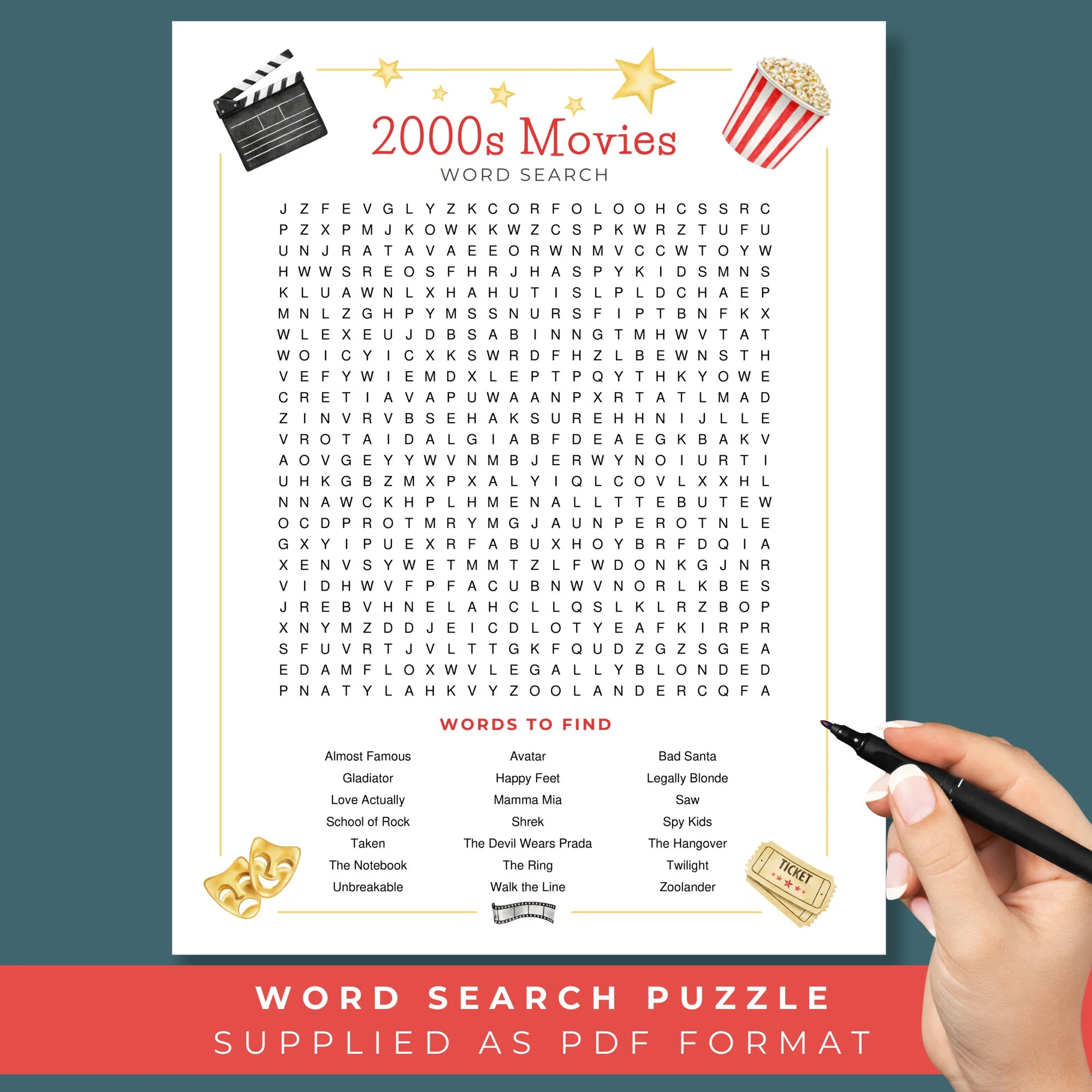 2000s Movies Word Search 00s Movies Printable Word Puzzles Noughties Party Movie Night Party Game 21st Birthday Gift Movie Lover Gift Etsy