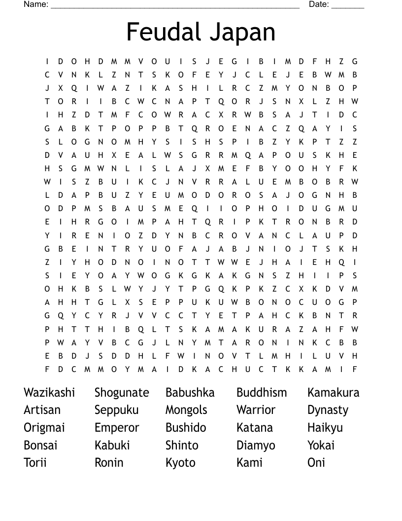 With words hidden horizontally, vertically, and diagonally, this word search offers a challenge for all skill levels. Grab a pencil and start hunting for terms that defined the feudal system, expanding your knowledge while having fun at the same time.