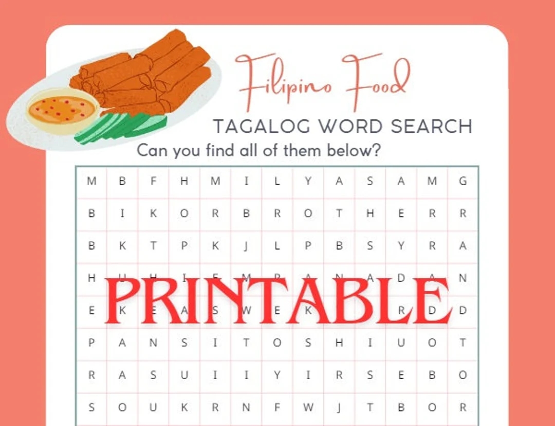Filipino Food Word Search Tagalog Printable Activity Kids Word Games Tagalog Vocabulary Puzzle Etsy