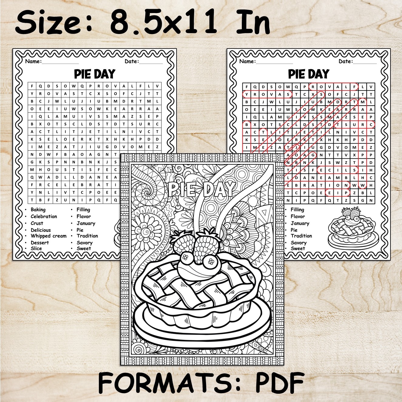 Pie Day Activities First Grade Word Search Coloring Page Worksheets Morning Work Made By Teachers
