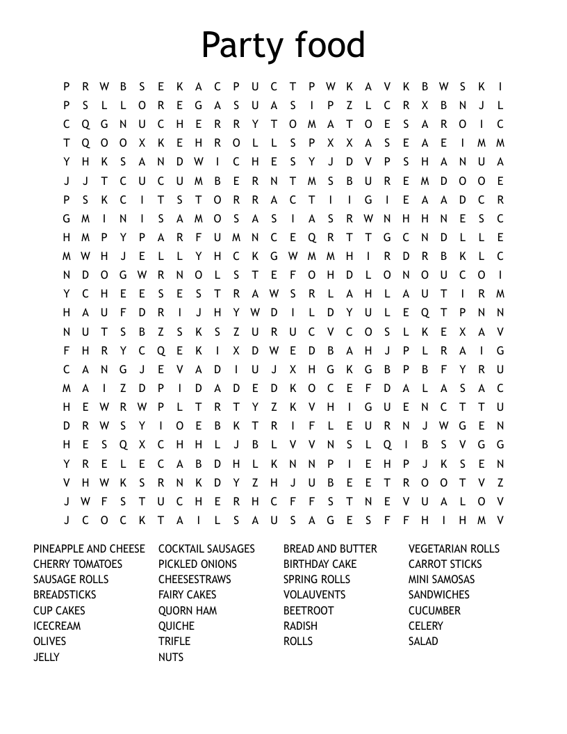 Party Food Word Search WordMint