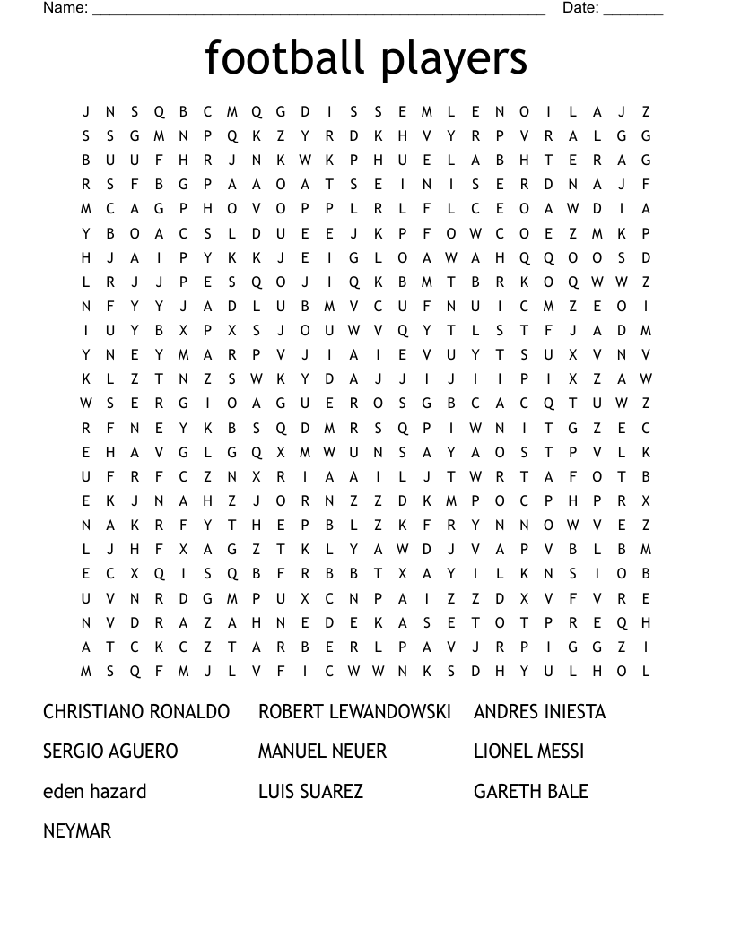 Soccer Players Word Search WordMint
