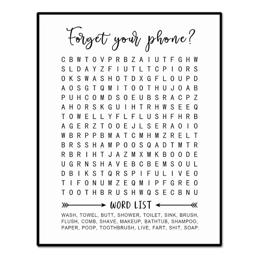 Amazon Bathroom Word Search Forget Your Phone Word Search Puzzle Bathroom Wall Art Bathroom Sign 8x10 Inch Unframed Home Kitchen