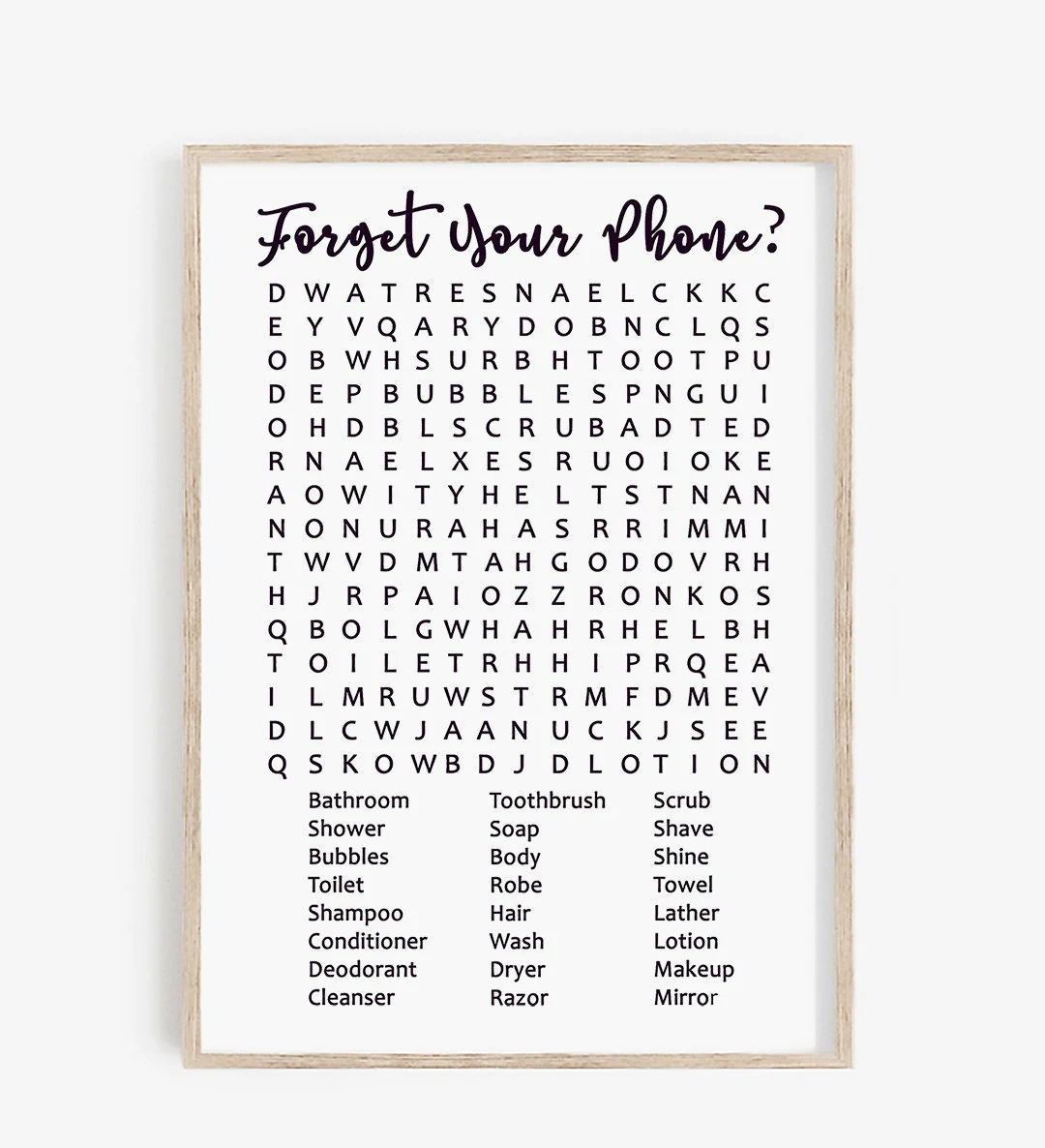 Forget Your Phone Bathroom Sign Printable Word Search Forgot Your Phone Crossword Bathroom Sign Wall Art Decor Games Digital Files Etsy