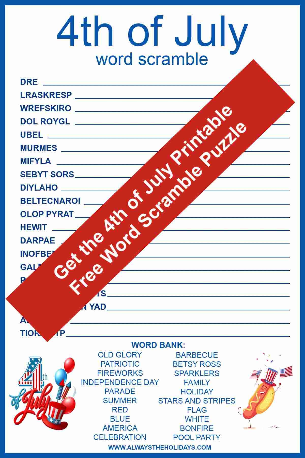 4th Of July Word Scramble With Answers Included Free Printable