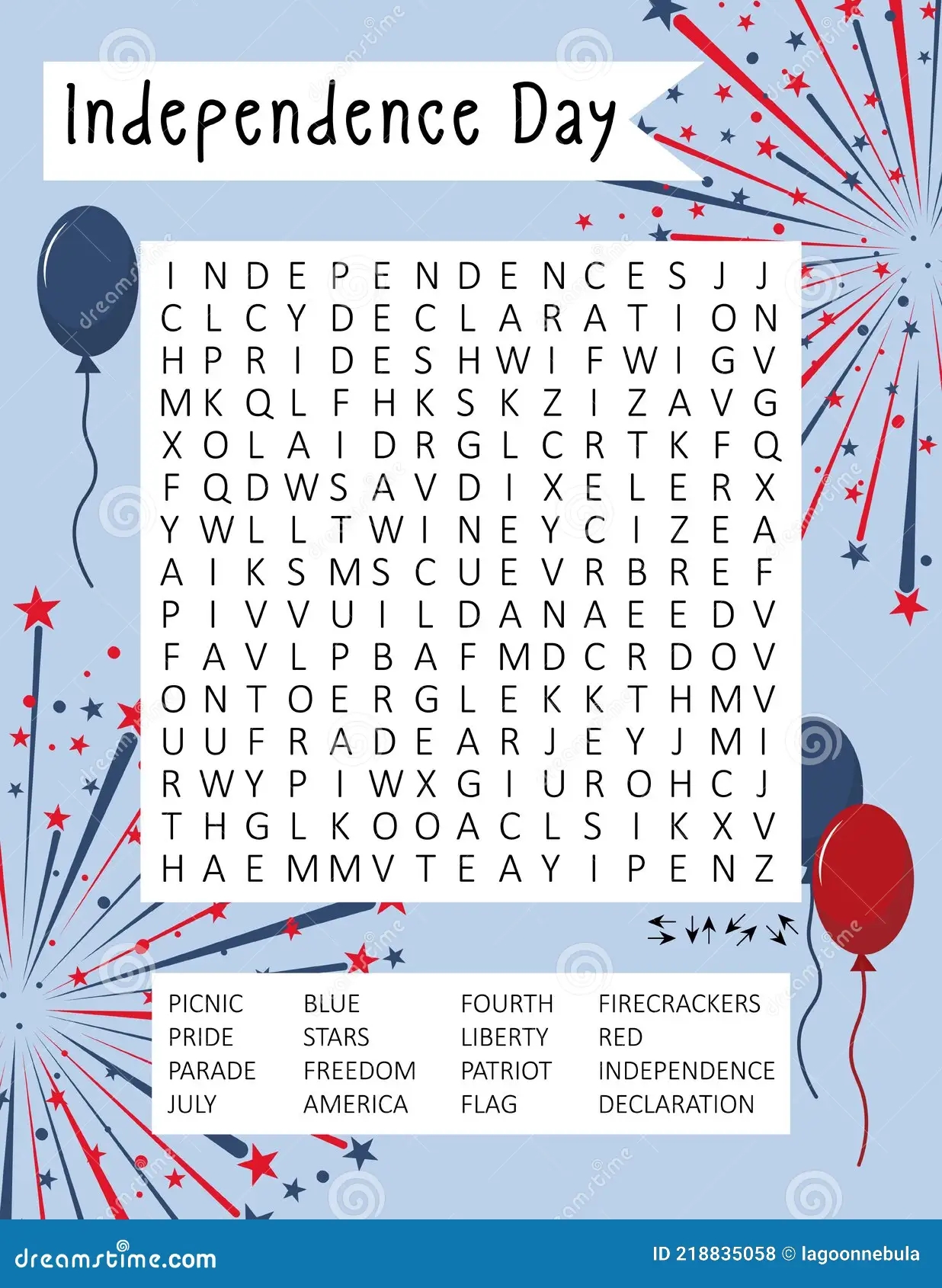 Independence Day 4th July Word Search Puzzle For Learning English Words Holiday Crossword Logic Game Stock Vector Illustration Of Holiday Activity 218835058