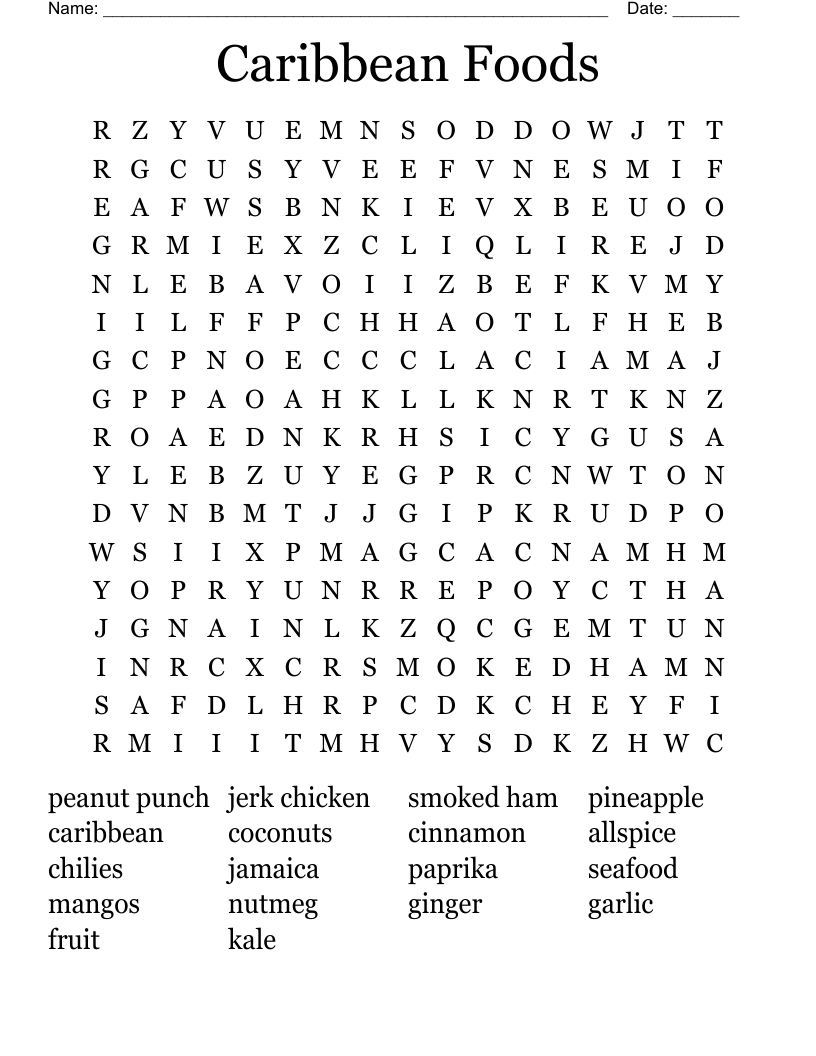 Caribbean Foods Word Search WordMint