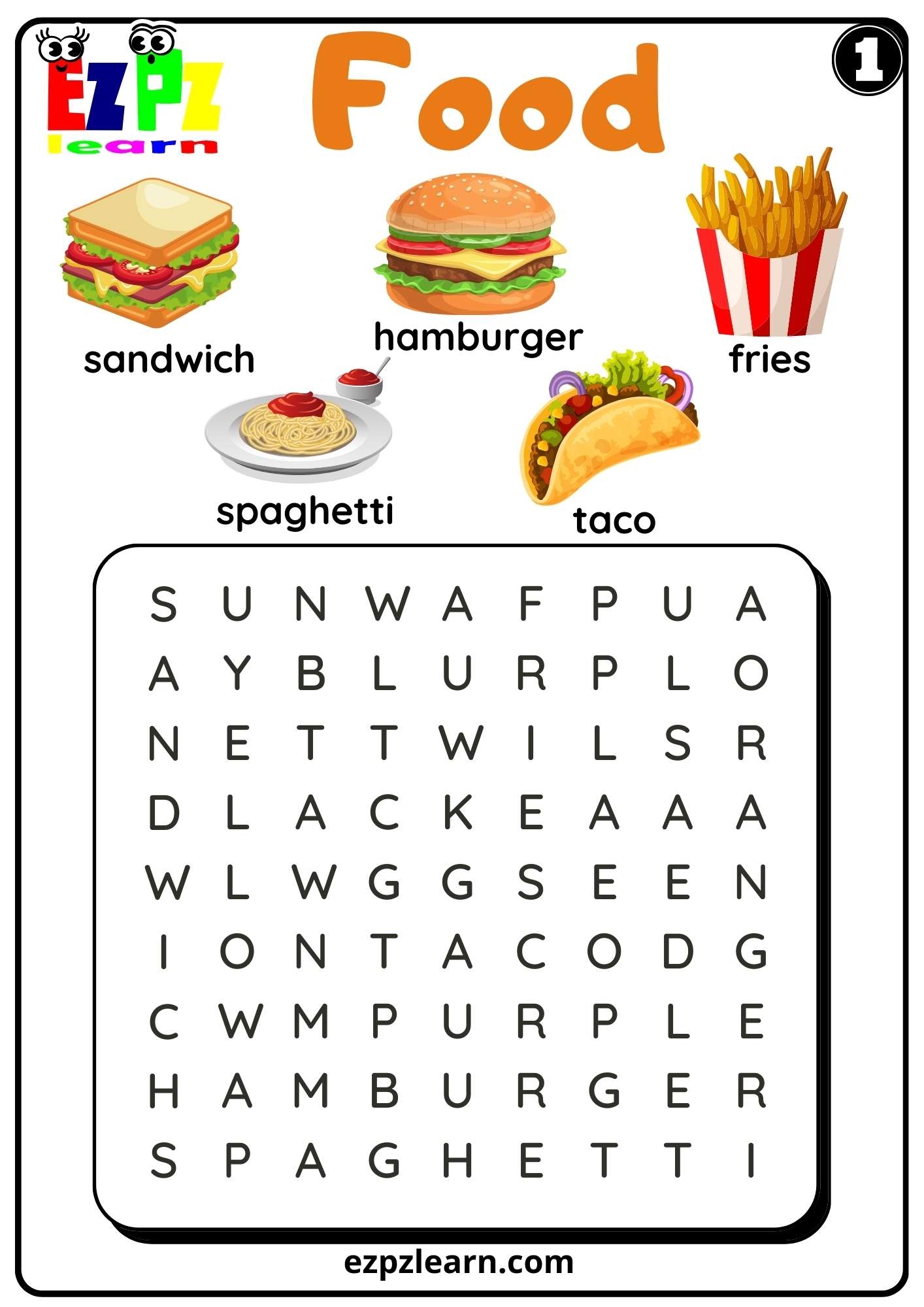 Food Word Search Worksheet For ESL And Kindergarten K5 Set 1 Free PDF Download Ezpzlearn
