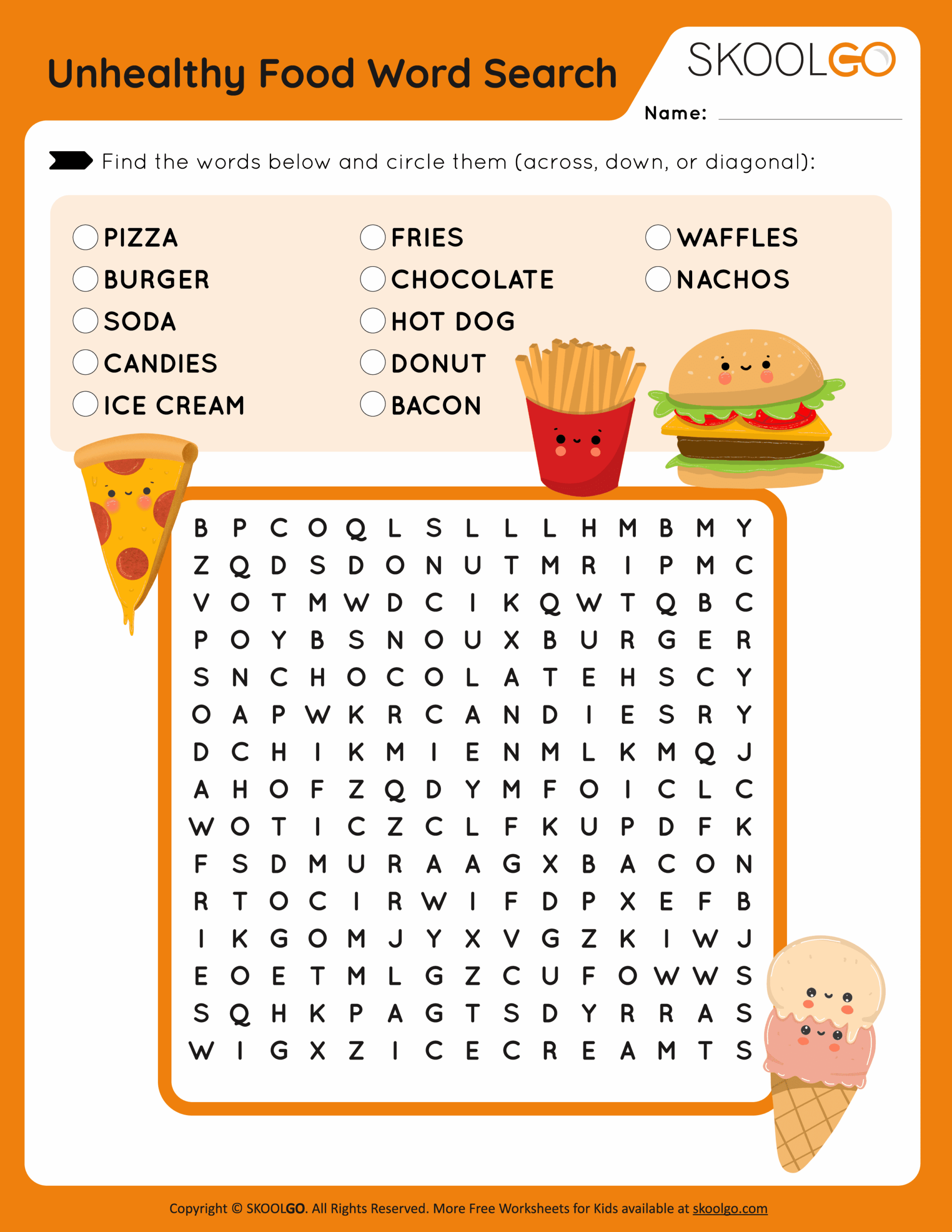 Unhealthy Food Word Search Free Game For Kids SKOOLGO