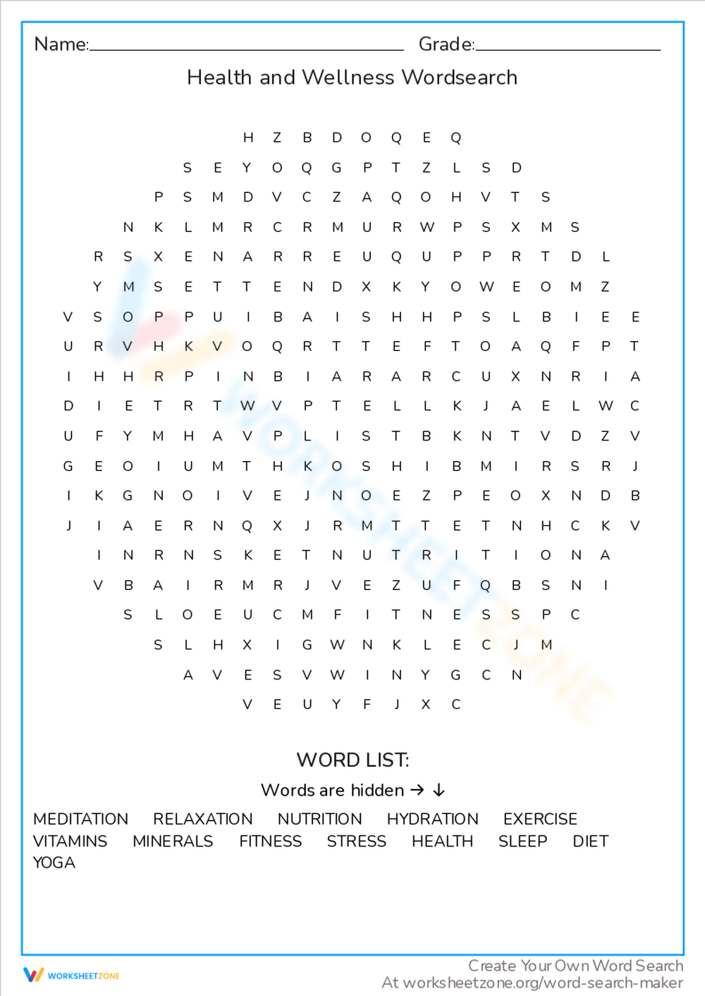 With a variety of themes such as nutrition, exercise, mental health, and more, you can choose a word search that interests you the most. These printables are easy to download and print, making them convenient for use anytime and anywhere.
