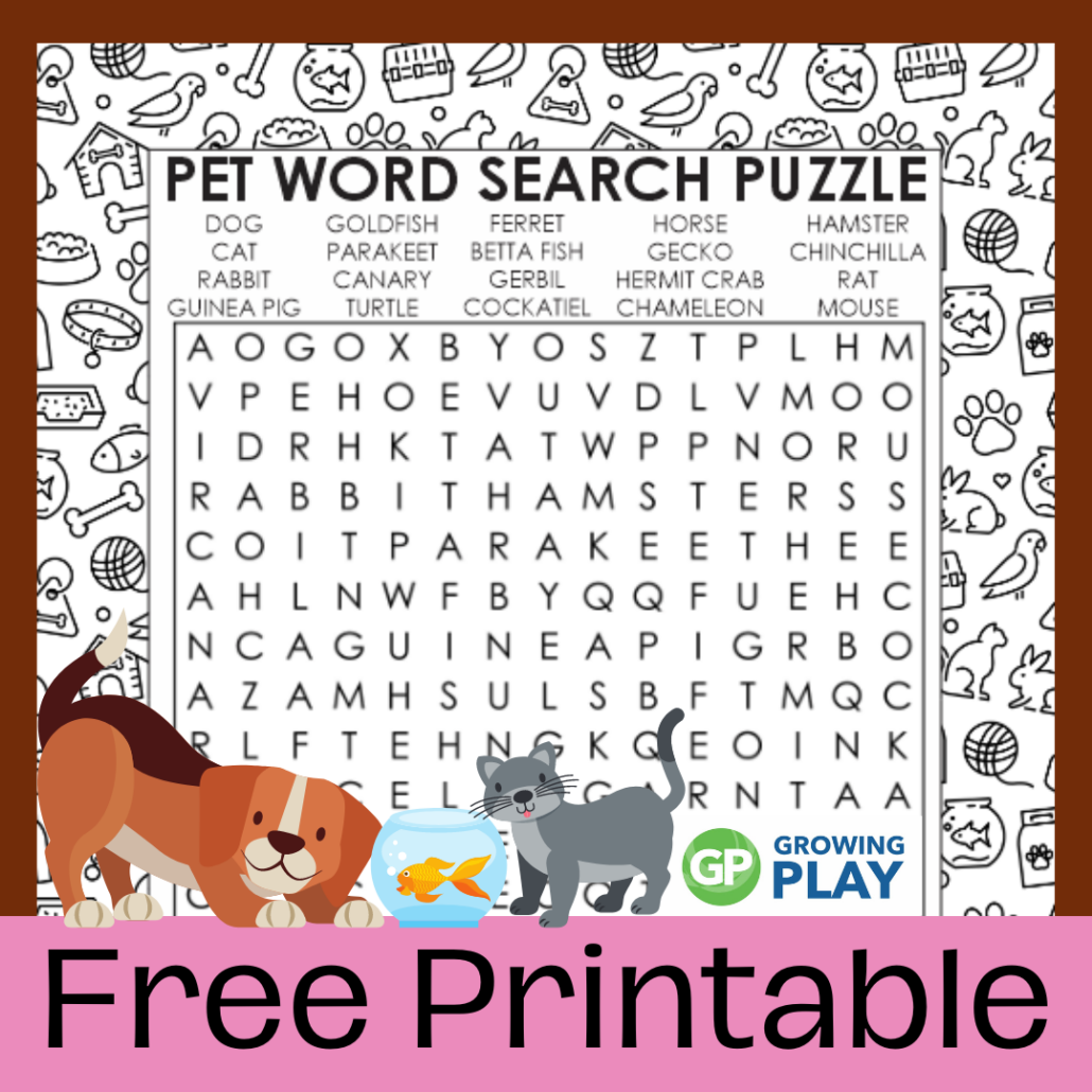 Pet Word Search Free Printable Growing Play