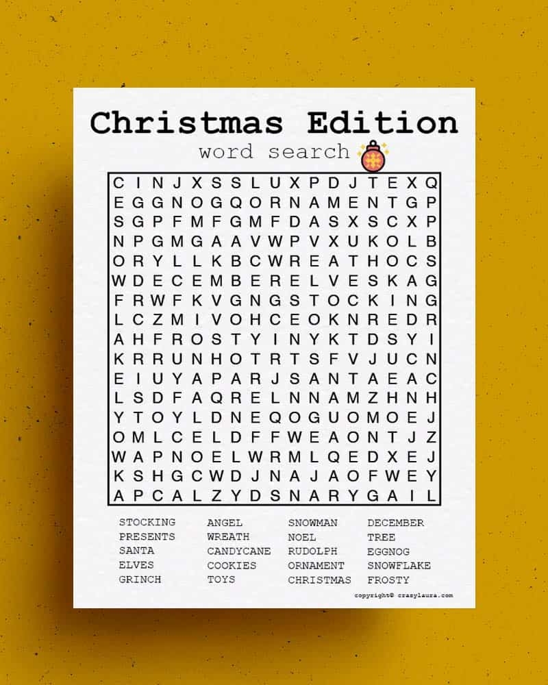 Free Christmas Word Search Printable PDF Game Sheets Crazy Laura