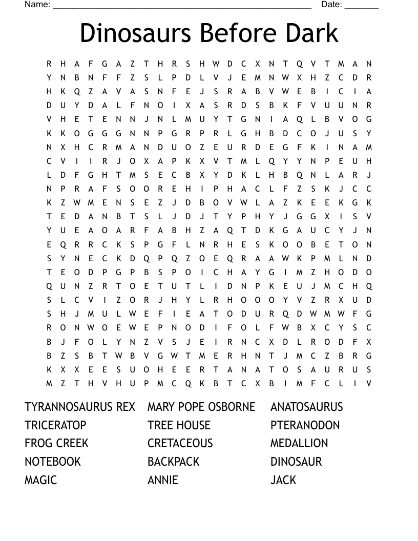 Dinosaurs Before Dark Word Search WordMint