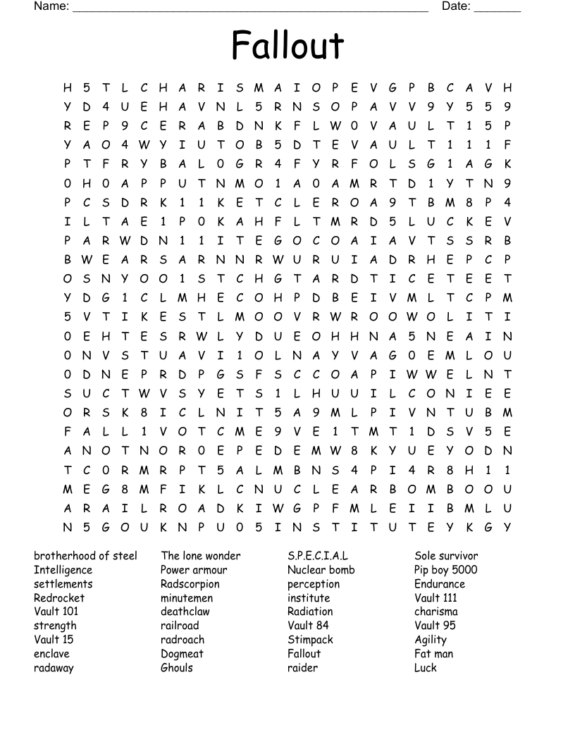 Don’t miss out on this fantastic opportunity to test your Fallout knowledge and have a great time doing it. Download your Free Printable Fallout Word Searches now and get ready for hours of entertainment!