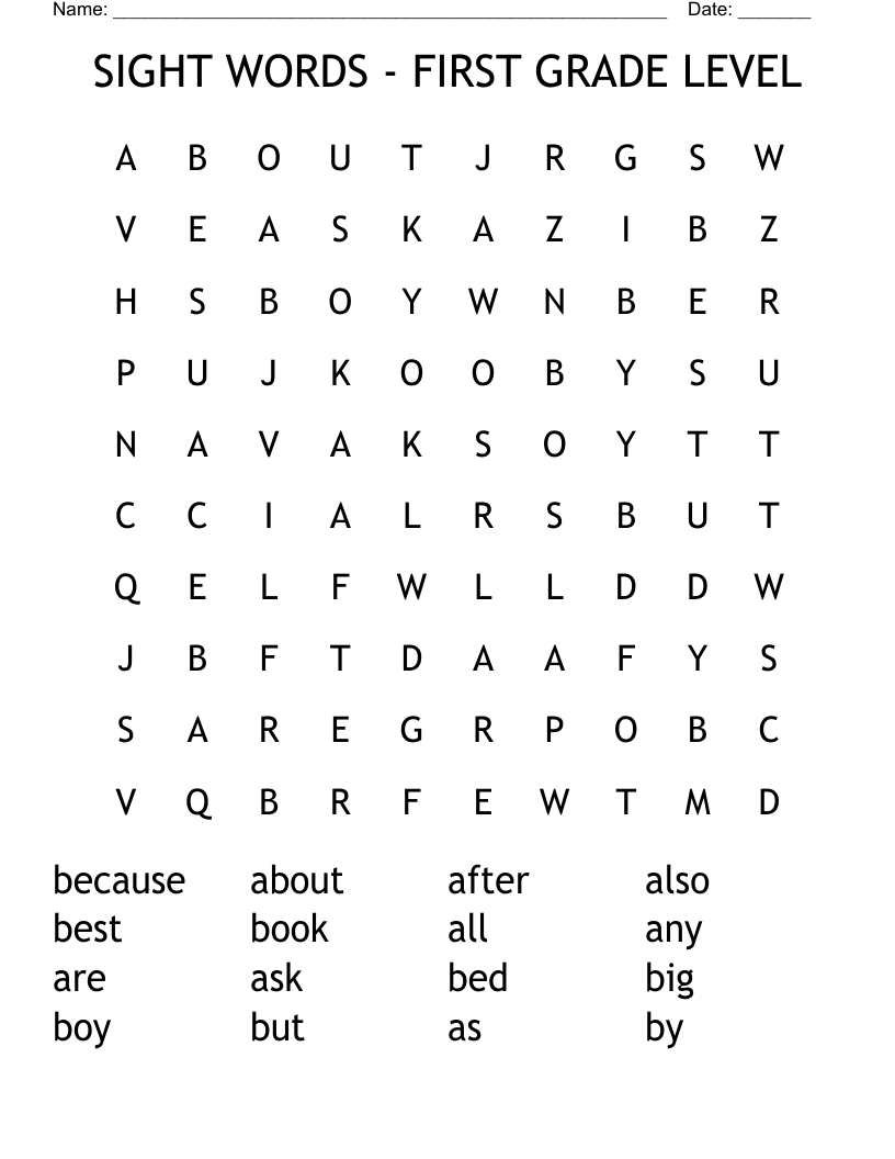 SIGHT WORDS FIRST GRADE LEVEL Word Search WordMint