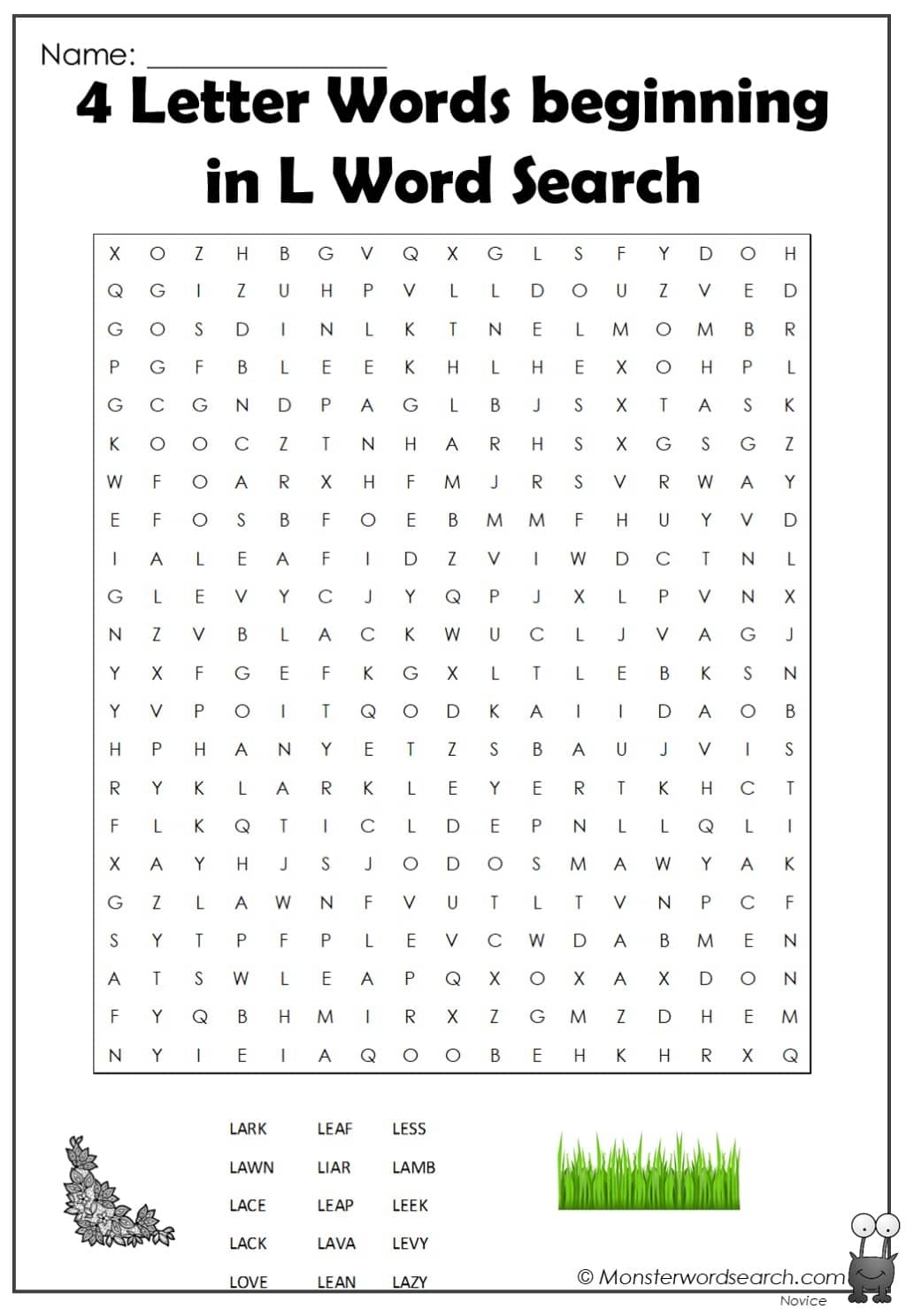 4 Letter Words Beginning In L Word Search 2 Monster Word Search