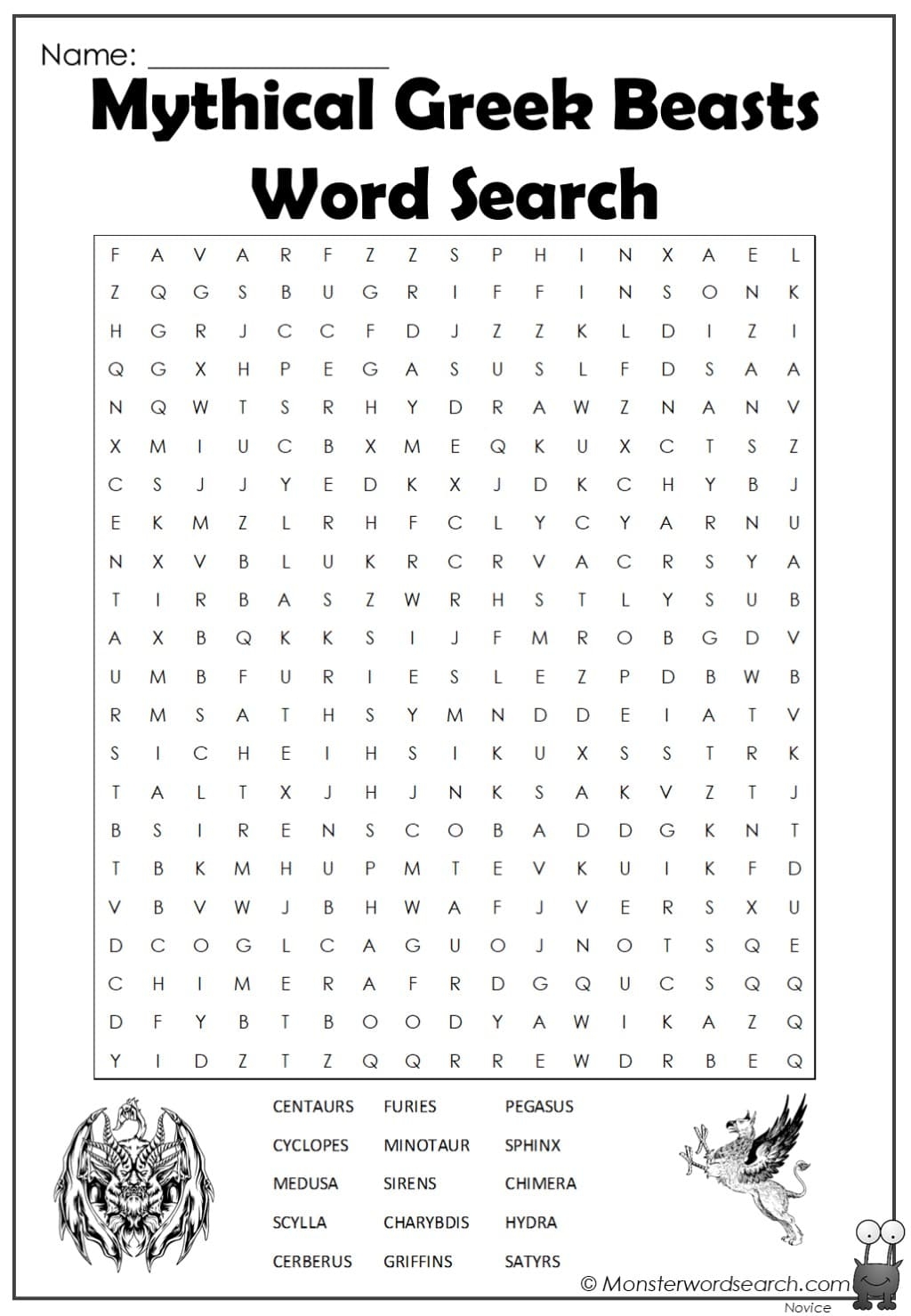 Mythical Greek Beasts Word Search Monster Word Search