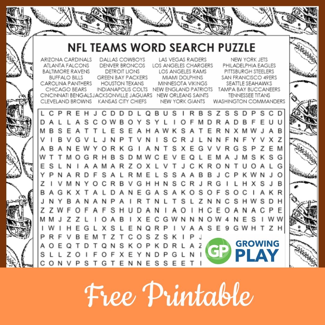 NFL Teams Word Search Puzzle Free Printable Growing Play