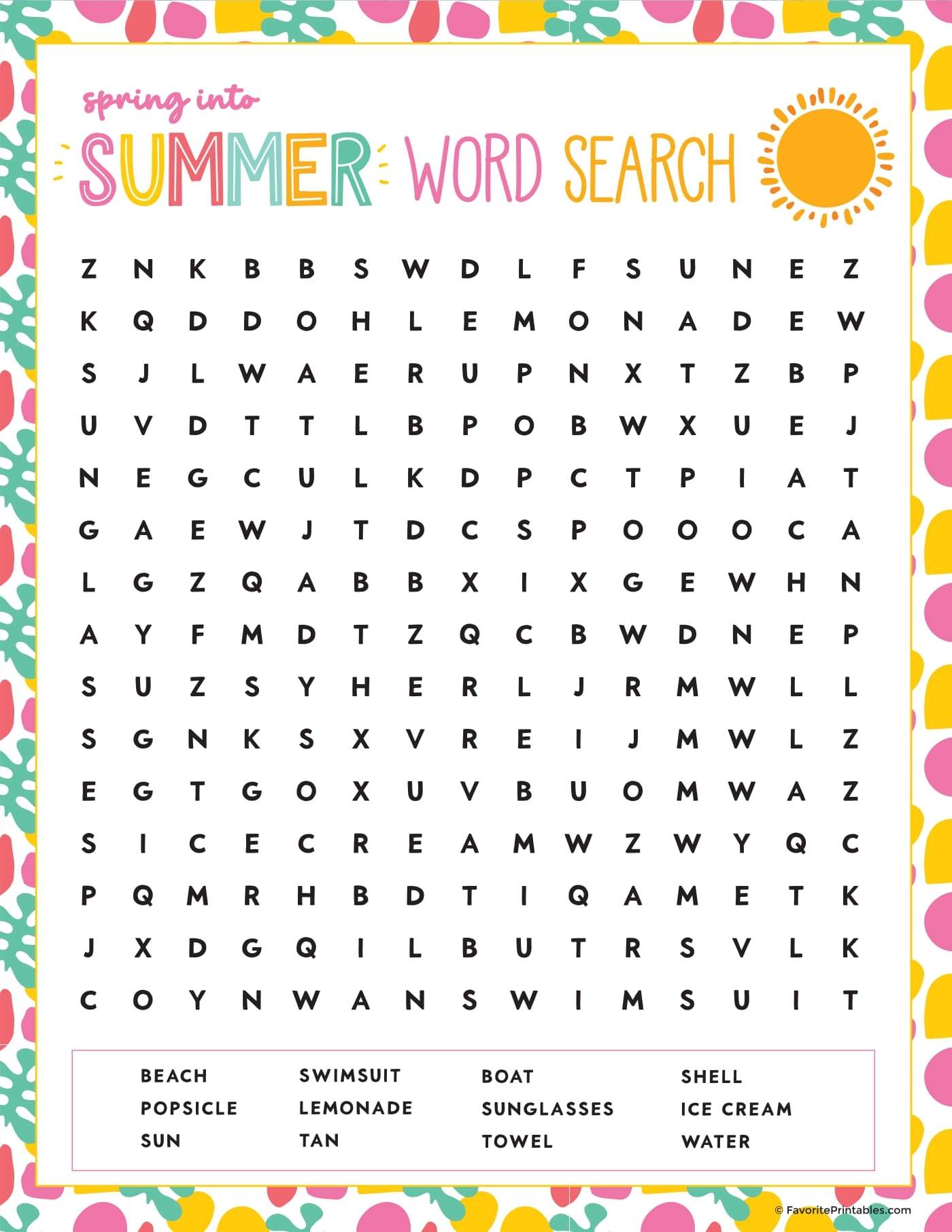 Free Printable Summer Word Search Favorite Printables