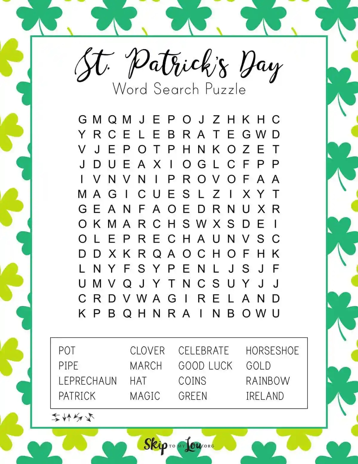 St Patrick s Day Word Search Skip To My Lou