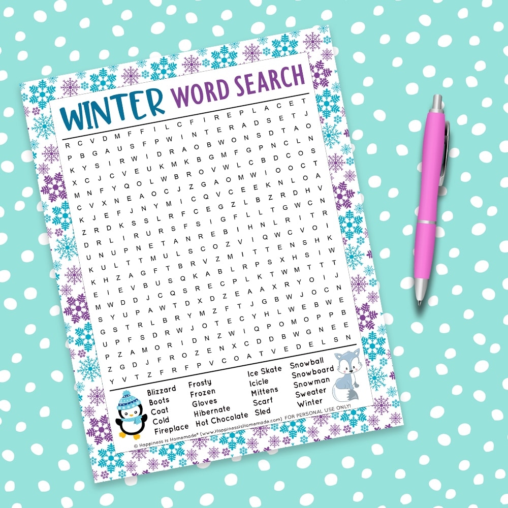 Print out multiple copies of the word search and challenge your friends to a race to see who can find all the words first. You can even make it a friendly competition with prizes for the winner. It’s a simple yet enjoyable way to spend a winter afternoon.