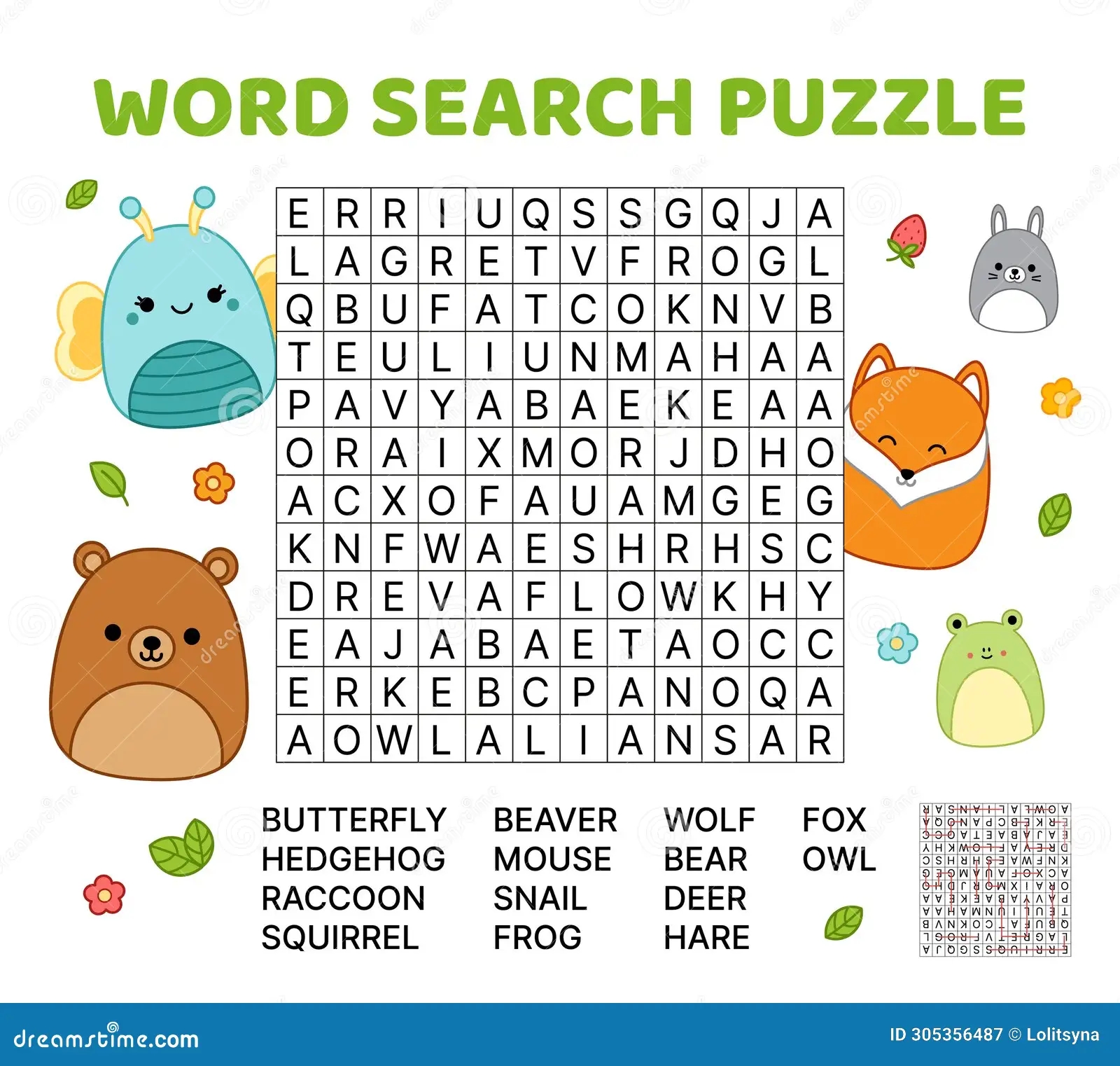 Forest Animals Word Search Game Puzzle For Kids Squishmallow English Words Stock Vector Illustration Of Crossword Puzzle 305356487