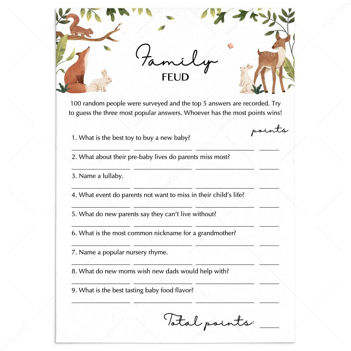 Fun Baby Shower Family Feud Questions And Answers Woodland