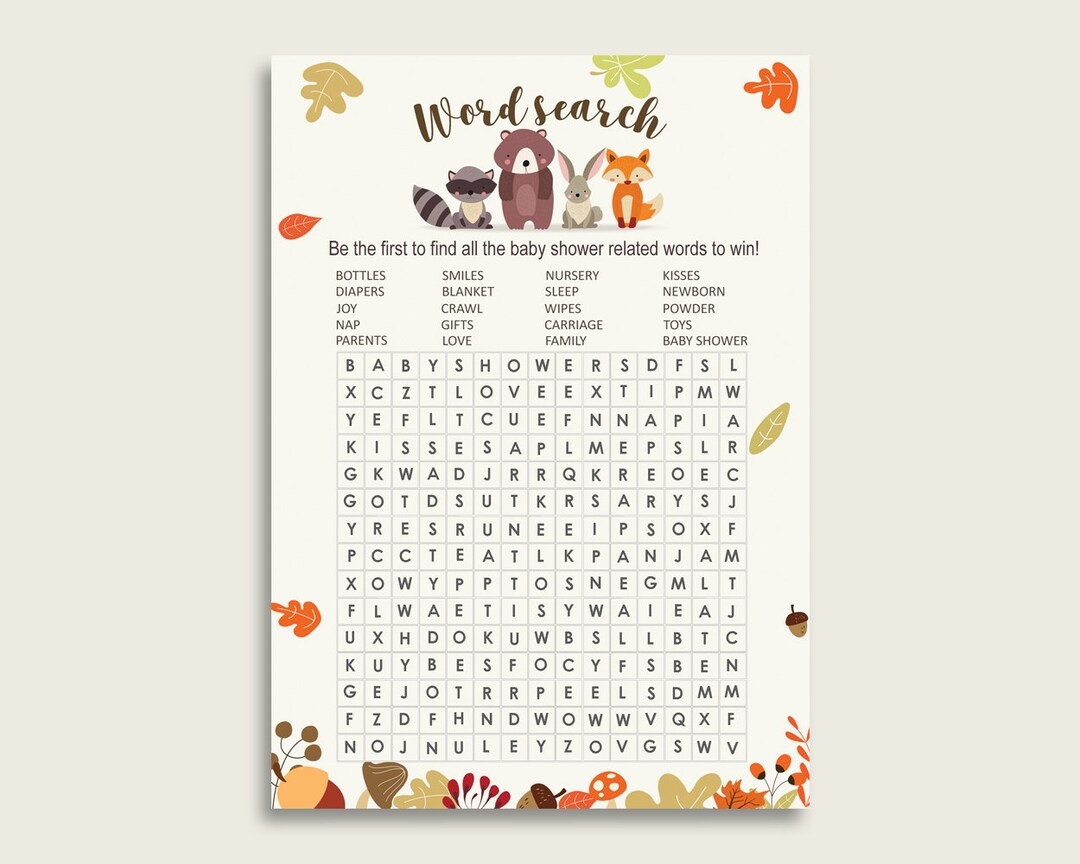 Woodland Word Search Game Brown Beige Baby Shower Word Search Cards Printable Gender Neutral Baby Shower Activities Hidden Words W0001 Etsy