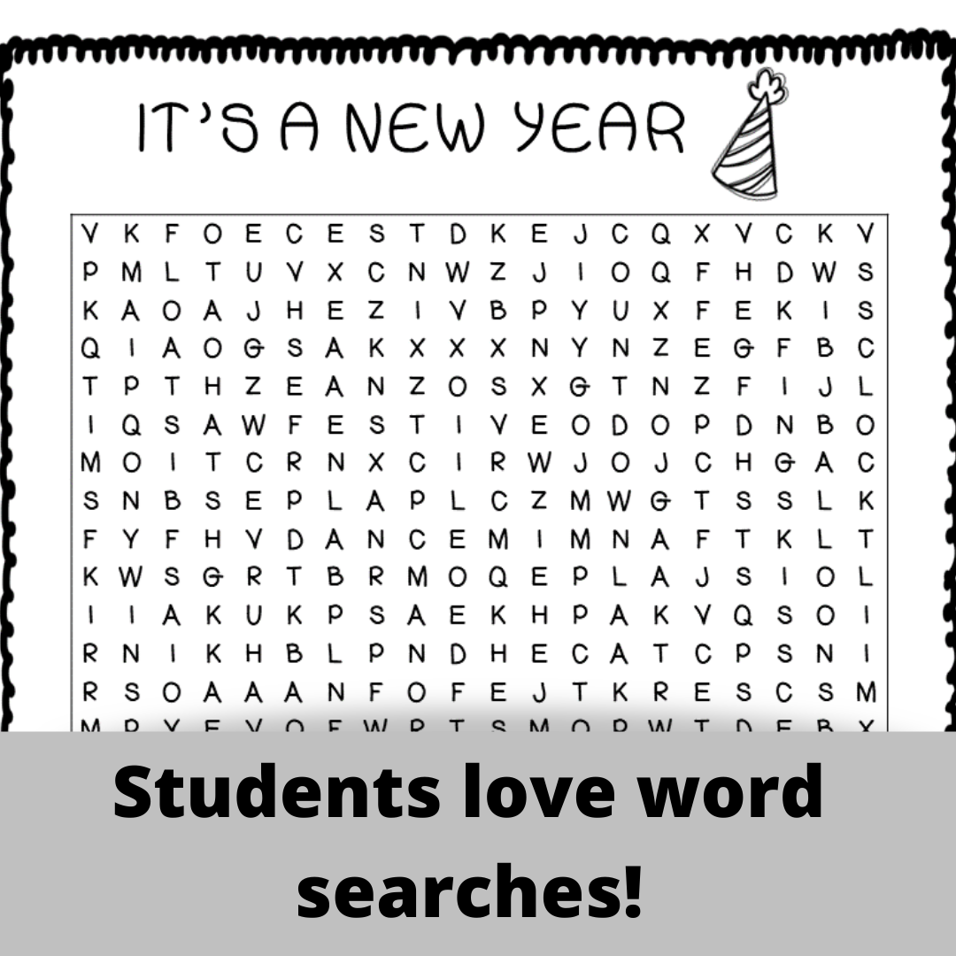 New Years Activities Word Searches Crosswords Writing Bookmarks Classful