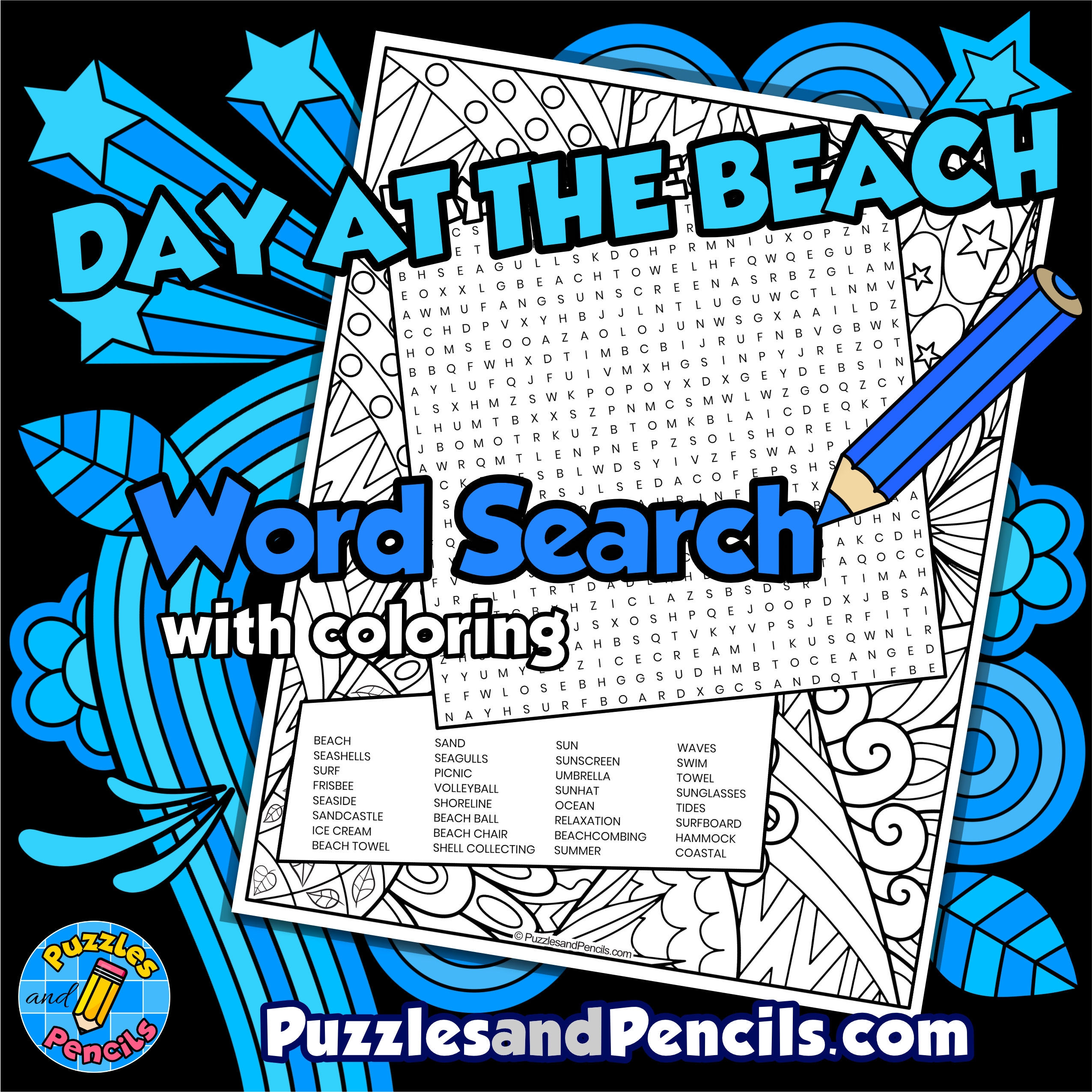 Day At The Beach Word Search Puzzle Activity With Coloring Summer Wordsearch Made By Teachers